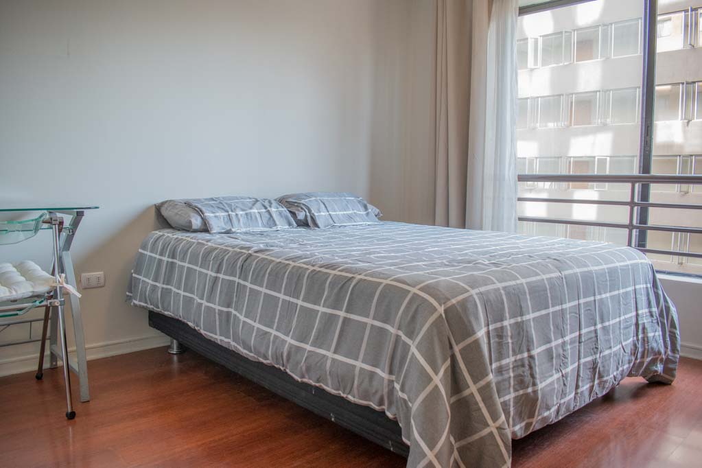 Departamento amoblado de un ambiente (studio) ubicado a 3 minutos caminando de la parada de autobús y a 3 minutos caminando de la Estación de Metro Bellas Artes.El departamento tiene cocina (cerrada) y 1 baño. La habitación 1 tiene cama matrimonial, clóset, mesa de noche, televisor, escritorio y silla; El lugar mide 23m² aproximadamente. Los gastos de servicios de gastos comunes, agua caliente, agua fría, electricidad e internet se pagan por adelantado junto a la renta mensual, con un límite de consumo de $ 84USD. El alojamiento tiene lavandería compartida cuyo valor es $ 2USD aproximadamente por carga de ropa (lavado o secado). Se debe pagar garantía (depósito) la que será devuelta al finalizar el período de arriendo; además, se debe pagar $ 29USD al momento de devolver el alojamiento para realizar la limpieza del lugar. Cerca del alojamiento se encuentra el Barrio Lastarria y Barrio Bellas Artes (barrios históricos - culturales), caracterizados por sus casonas del siglo XIX restauradas y utilizadas como restaurantes, cafeterías, librerías, centros culturales, entre otros. A pasos podrás encontrar el Museo Nacional de Bellas Artes, donde se resguarda lo más valioso del arte nacional e internacional y el Parque Forestal, lugar ideal para compartir con amigos, practicar deportes y pasear.