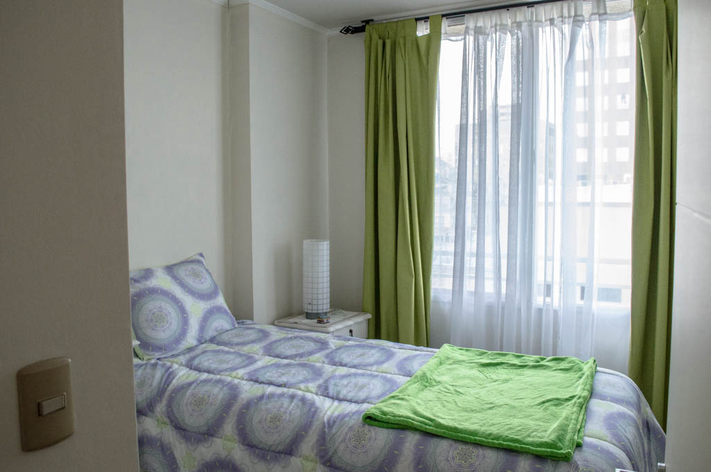 Departamento de 2 habitaciones, con orientación oriente (este), ubicado a 1 minuto caminando de la parada de autobús y a 5 minutos caminando de la Estación de Metro Santa Ana.Características generales: