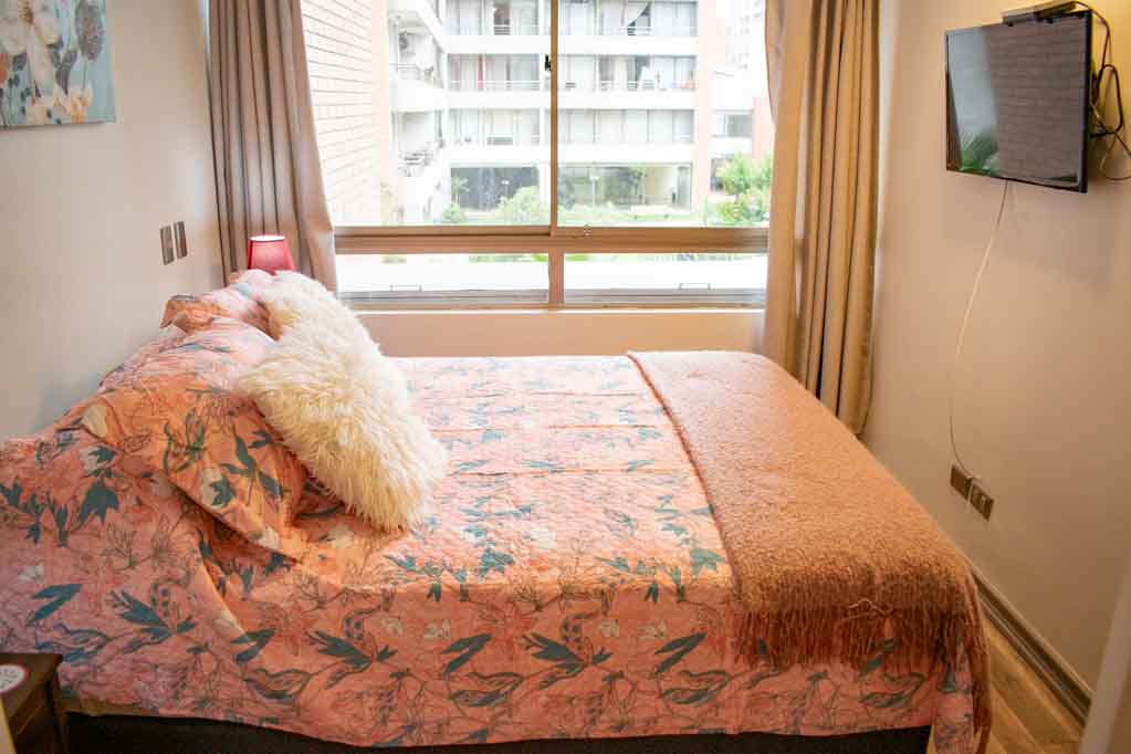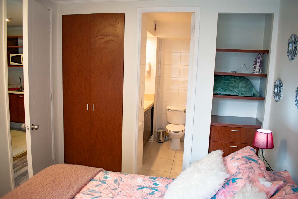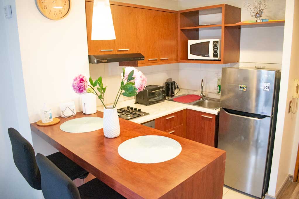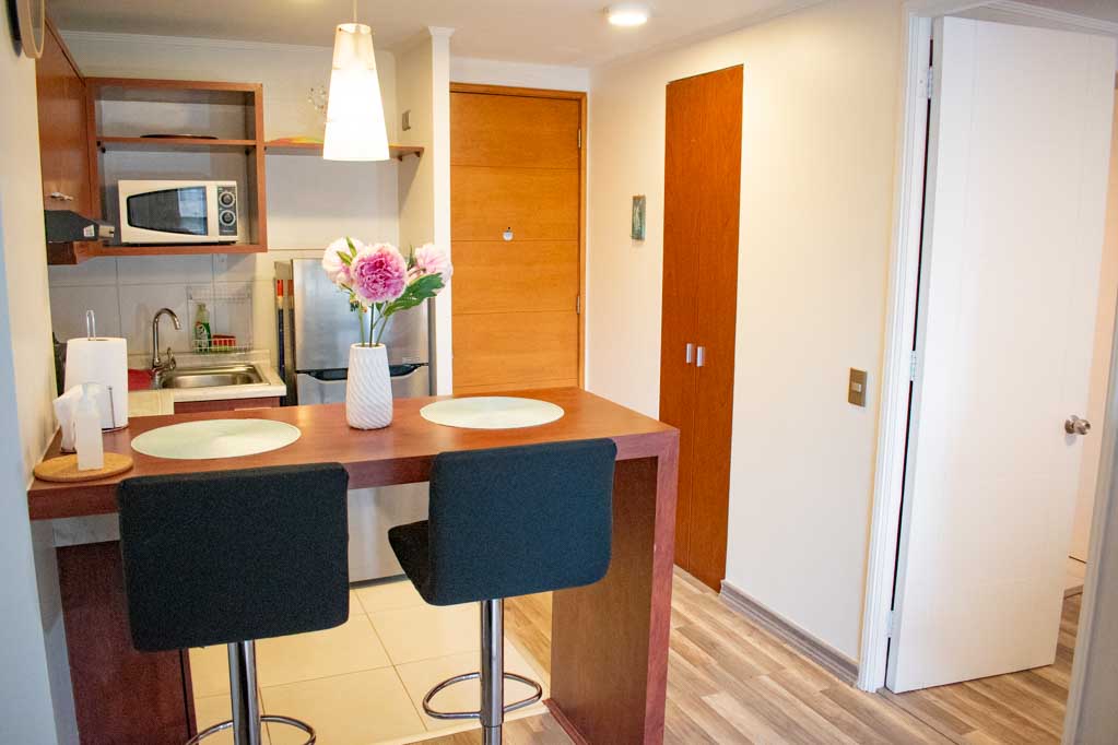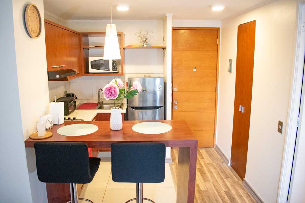 Departamento de 1 habitación, con orientación oriente (este), ubicado a 3 minutos caminando de la parada de autobús y a 5 minutos caminando de la Estación de Metro Santa Lucía.Características generales: