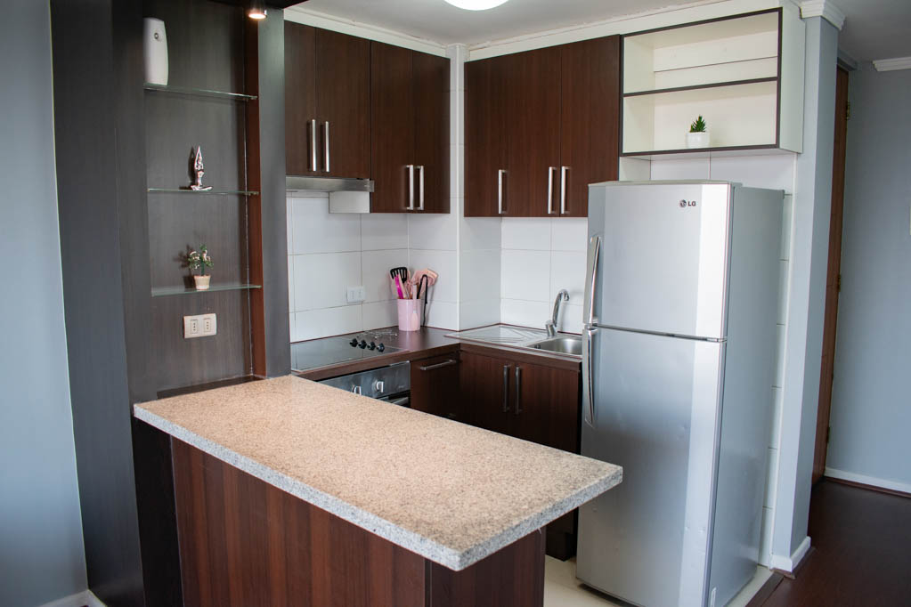 Departamento de 2 habitaciones, con orientación norte y oriente (este), ubicado a 2 minutos caminando de la parada de autobús y a 7 minutos caminando de la Estación de Metro Santa Lucía.Características generales: