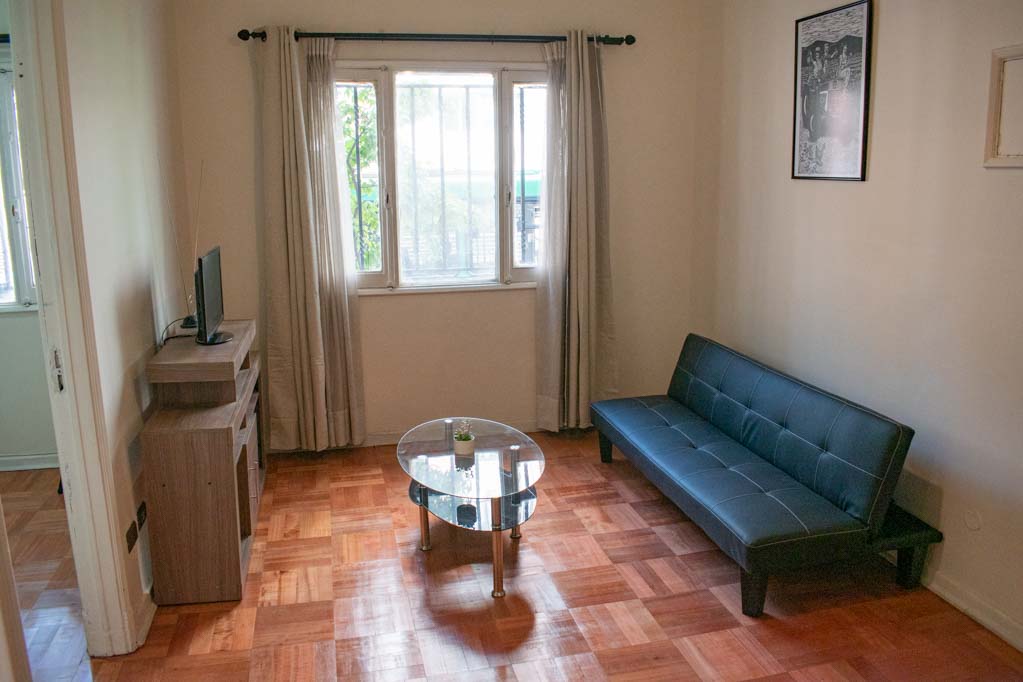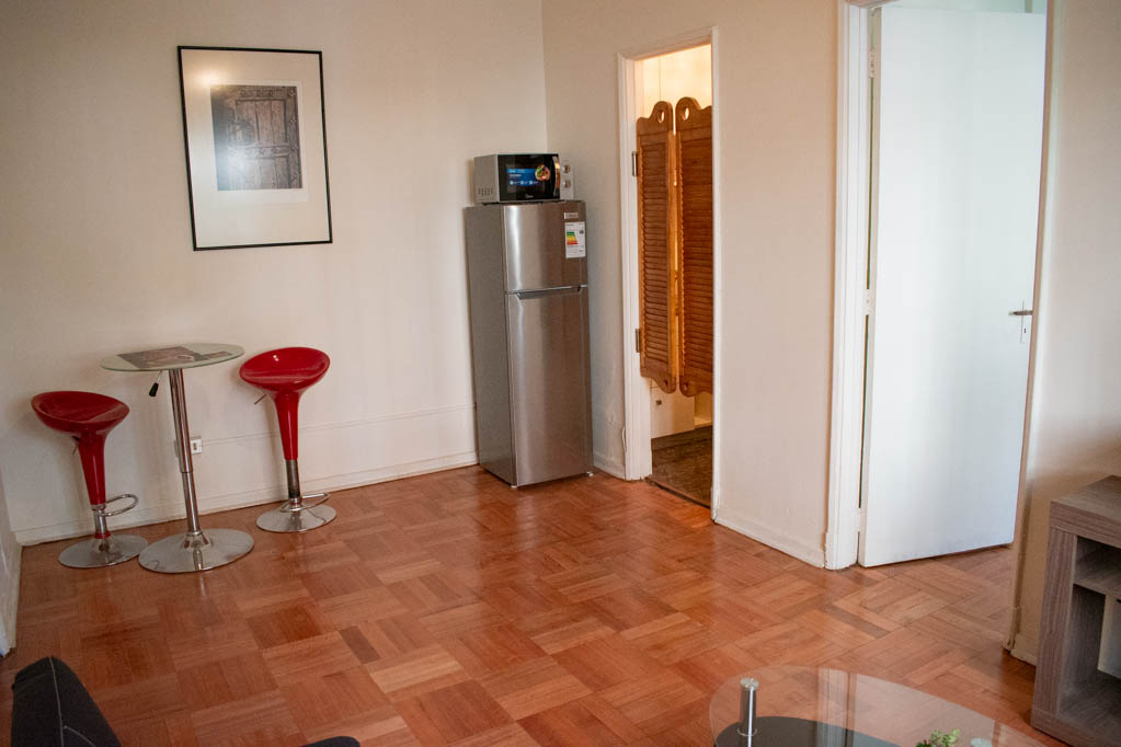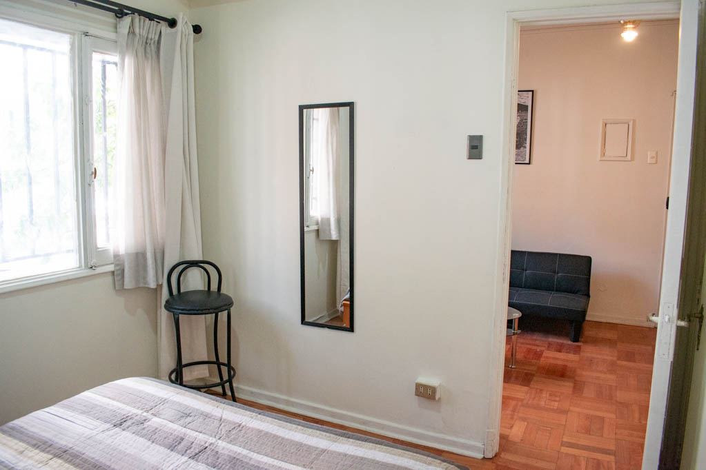 Departamento amoblado de 1 habitación ubicado a 4 minutos caminando de la parada de autobús y a 7 minutos caminando de la Estación de Metro La Moneda.El departamento tiene living, comedor, cocina (kitchinette) y 1 baño. La habitación 1 tiene cama matrimonial, clóset, 2 mesas de noche, silla y baño en suite; El lugar mide 38m² aproximadamente. Se debe considerar el pago de gastos de servicios de gastos comunes, agua caliente, agua fría, electricidad y gas que suman $ 88USD aproximadamente. Se debe pagar garantía (depósito) la que será devuelta al finalizar el período de arriendo; además, se debe pagar $ 58USD al momento de devolver el alojamiento para realizar la limpieza del lugar. Cerca del alojamiento se encuentra la Avenida Bernardo O'Higgins (más conocida como Alameda), el Palacio de La Moneda y la Plaza de la Constitución, entre otras edificaciones de valor histórico y arquitectónico. También podrás encontrar, múltiples restoranes, bares, bancos y entidades gubernamentales.
