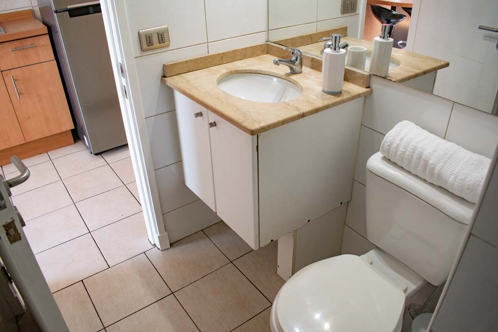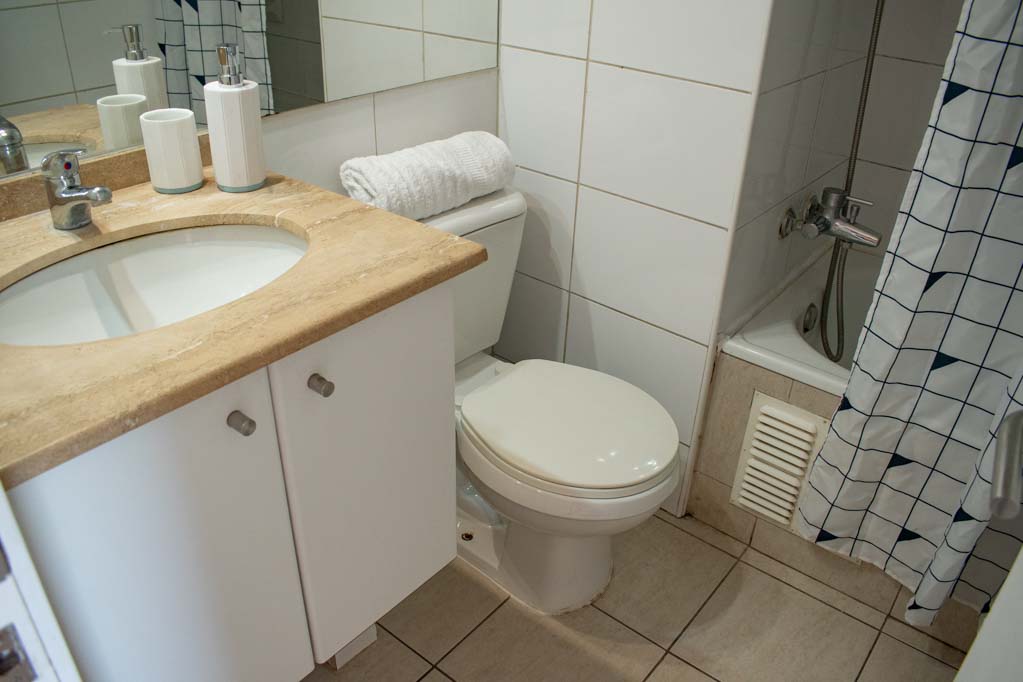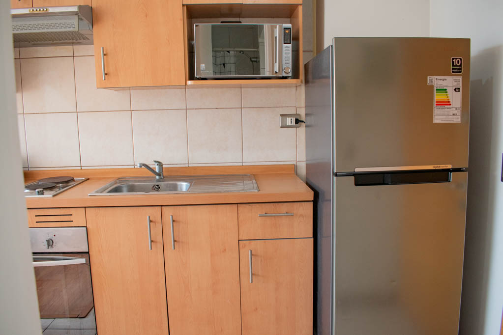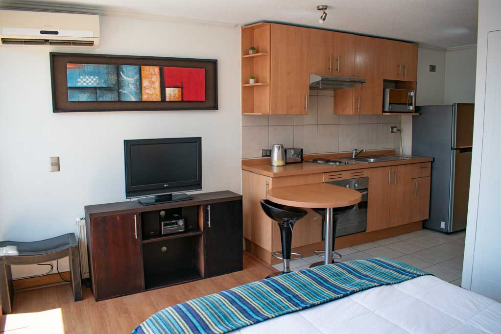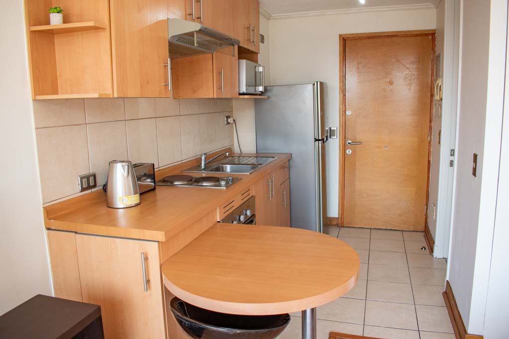 Departamento amoblado de un ambiente (studio) ubicado a 5 minutos caminando de la parada de autobús y a 3 minutos caminando de la Estación de Metro Universidad Católica.El departamento tiene comedor, cocina (abierta), 1 baño y balcón. La habitación 1 tiene cama matrimonial, clóset, 2 mesas de noche, televisor y baño en suite; El lugar mide 32m² + 1m² de terraza aproximadamente. Se debe considerar el pago de gastos de servicios de gastos comunes, agua caliente, agua fría y electricidad que suman $ 98USD aproximadamente. El alojamiento tiene lavandería compartida cuyo valor es $ 2USD aproximadamente por carga de ropa (lavado o secado). Se debe pagar garantía (depósito) la que será devuelta al finalizar el período de arriendo; además, se debe pagar $ 44USD al momento de devolver el alojamiento para realizar la limpieza del lugar. Cerca del alojamiento se encuentra la Facultad de Arquitectura de la Universidad de Chile y la Casa Central de la Universidad Católica. En la Avenida Bernardo O'Higgins (más conocida como Alameda) es posible encontrar gran variedad de locales comerciales, bancos, cines, restaurantes y medios de transporte público. En sus proximidades, también podrás disfrutar del Barrio Lastarria conocido por sus diversos bares, cafés, restaurantes y centros culturales como el GAM.