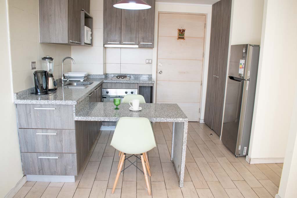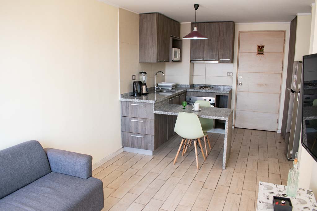 Departamento de 2 habitaciones, con orientación oriente (este), ubicado a 2 minutos caminando de la parada de autobús y a 9 minutos caminando de la Estación de Metro Santa Ana.Características generales: