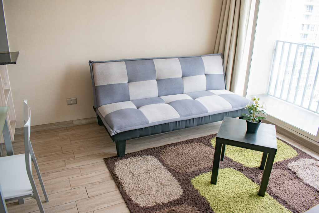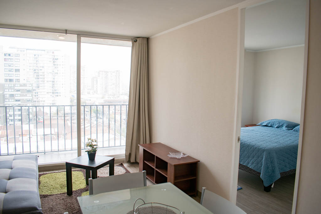 Departamento amoblado de 1 habitación ubicado a 1 minuto caminando de la parada de autobús y a 15 minutos caminando de la Estación de Metro Irarrázaval.El departamento tiene living, comedor, cocina (abierta), 1 baño y terraza. La habitación 1 tiene cama matrimonial, clóset, mesa de noche y baño en suite; El lugar mide 33m² + 5m² de terraza aproximadamente. Se debe considerar el pago de gastos de servicios de gastos comunes, agua caliente, agua fría y electricidad que suman $ 122USD aproximadamente. El alojamiento tiene lavandería compartida cuyo valor es $ 2USD aproximadamente por carga de ropa (lavado o secado). Se debe pagar garantía (depósito) la que será devuelta al finalizar el período de arriendo; además, se debe pagar $ 50USD al momento de devolver el alojamiento para realizar la limpieza del lugar. Cerca del alojamiento se encuentra la Avenida Irarrázaval, una de las arterias principales de Santiago, caracterizada por sus diversos locales comerciales, supermercados, restaurantes, pubs y discotecas. Además posee variados medios de transporte público a distintos puntos de la ciudad.