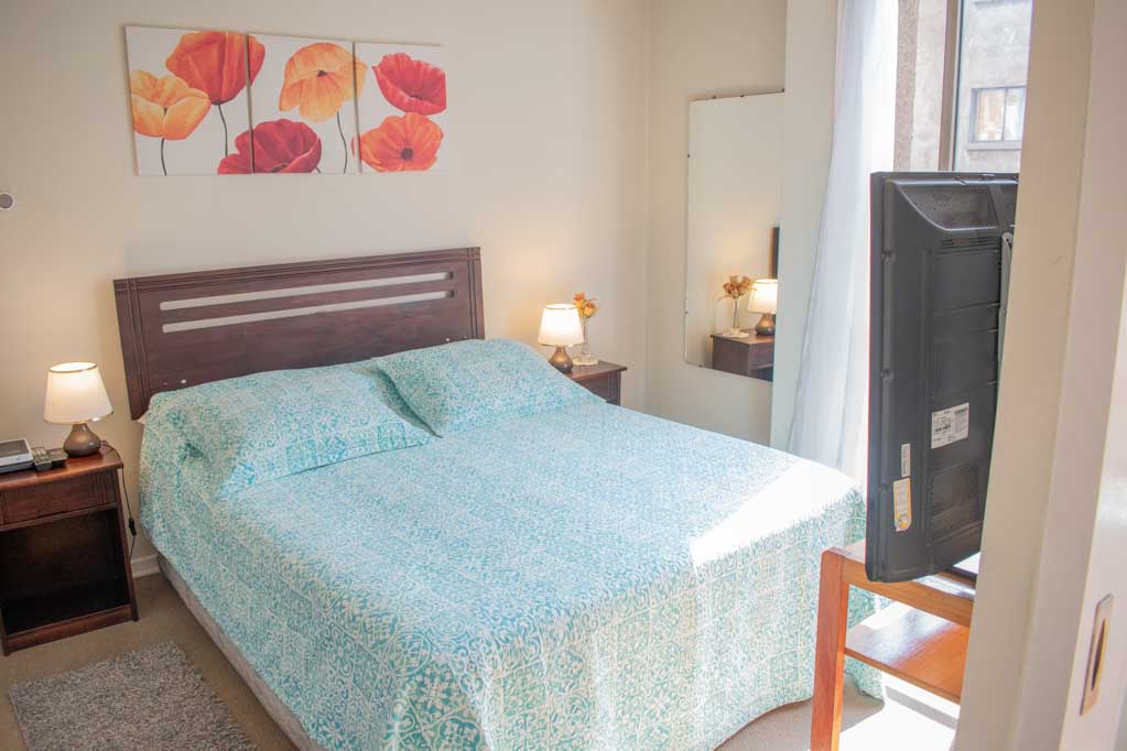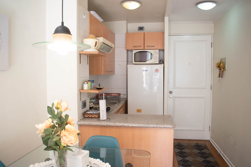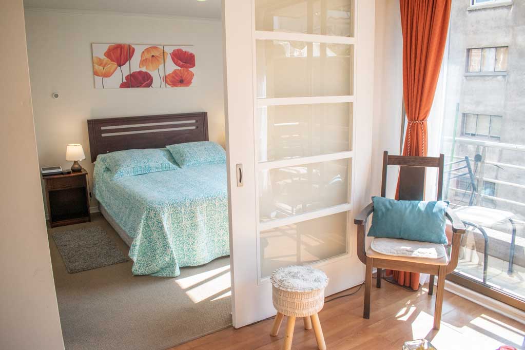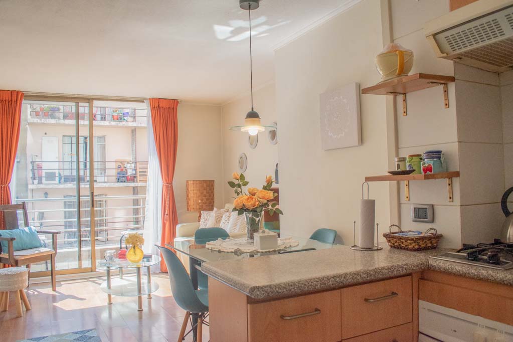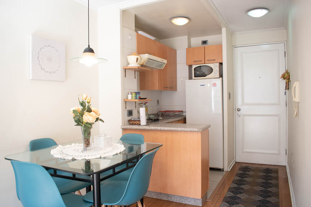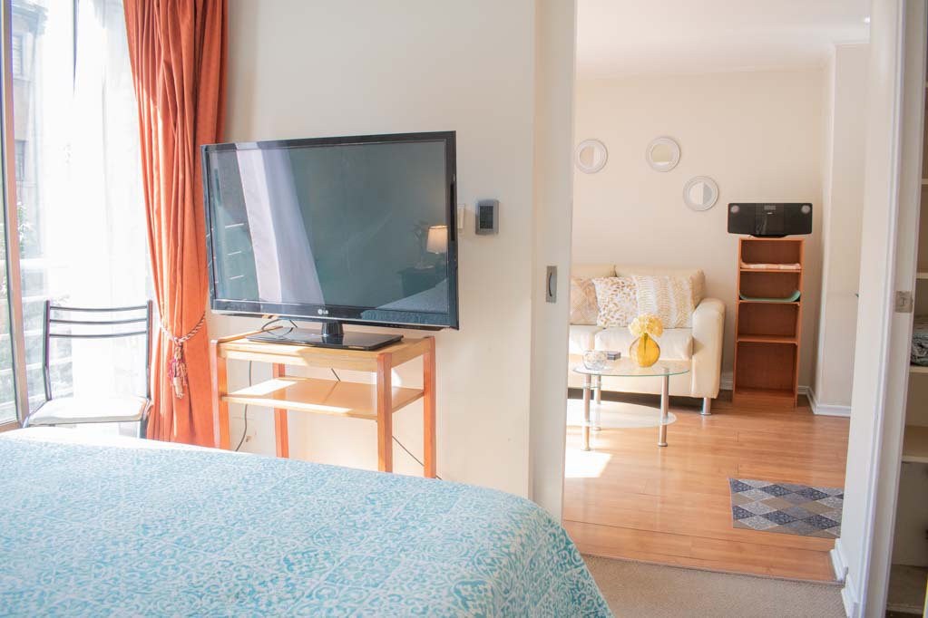 Departamento amoblado de 1 habitación ubicado a 3 minutos caminando de la parada de autobús y a 1 minuto caminando de la Estación de Metro Bellas Artes.El departamento tiene living, comedor, cocina (abierta), 1 baño y balcón. La habitación 1 tiene cama matrimonial, walk-in clóset, 2 mesas de noche, televisor y baño en suite; El lugar mide 38m² + 2m² de terraza aproximadamente. Los gastos de servicios de gastos comunes, agua caliente, agua fría, electricidad, gas, internet y TV cable se pagan por adelantado junto a la renta mensual, con un límite de consumo de $ 203USD. El alojamiento tiene lavandería compartida cuyo valor es $ 2USD aproximadamente por carga de ropa (lavado o secado). Se debe pagar garantía (depósito) la que será devuelta al finalizar el período de arriendo; además, se debe pagar $ 27USD al momento de devolver el alojamiento para realizar la limpieza del lugar. Cerca del alojamiento se encuentra el Barrio Lastarria y Barrio Bellas Artes (barrios históricos - culturales), caracterizados por sus casonas del siglo XIX restauradas y utilizadas como restaurantes, cafeterías, librerías, centros culturales, entre otros. A pasos podrás encontrar el Museo Nacional de Bellas Artes, donde se resguarda lo más valioso del arte nacional e internacional y el Parque Forestal, lugar ideal para compartir con amigos, practicar deportes y pasear.