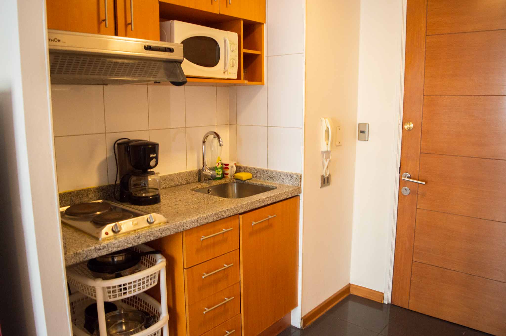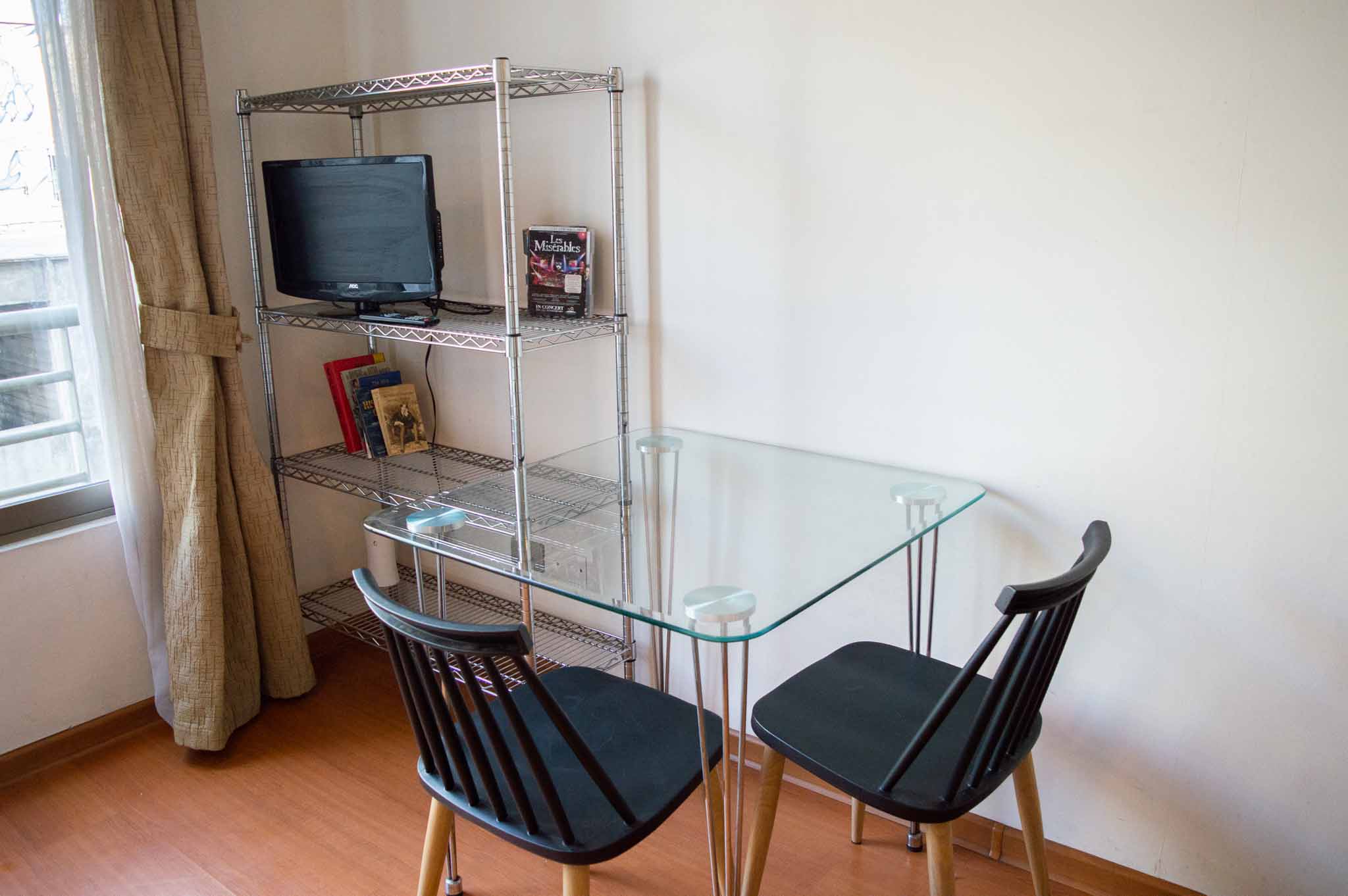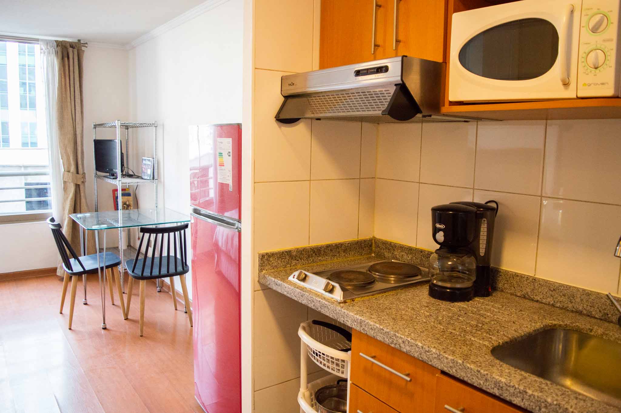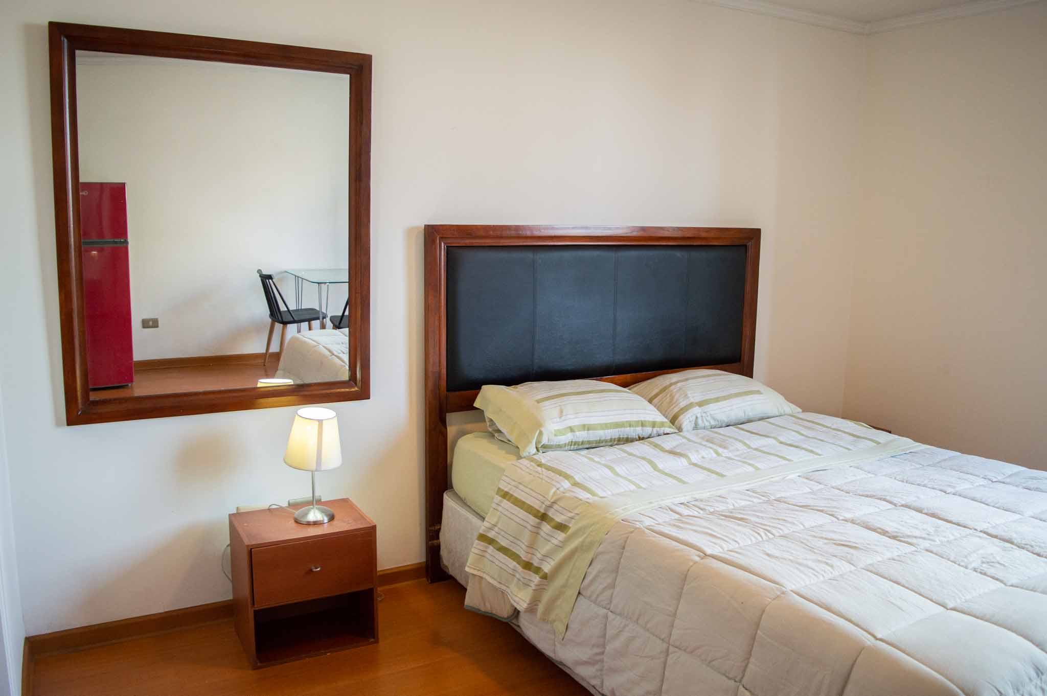 Departamento amoblado de un ambiente (studio) ubicado a 2 minutos caminando de la parada de autobús y a 4 minutos caminando de la Estación de Metro Bellas Artes.El departamento tiene living, comedor, cocina (kitchinette) y 1 baño. La habitación 1 tiene cama matrimonial, clóset, 2 mesas de noche, televisor, silla y baño en suite; El lugar mide 25m² aproximadamente. Los gastos de servicios de internet se pagan por adelantado junto a la renta mensual, con un límite de consumo de $ 22USD. Además, se debe considerar el pago de gastos de servicios de gastos comunes, agua caliente, agua fría y electricidad que suman $ 114USD aproximadamente. El alojamiento tiene lavandería compartida cuyo valor es $ 2USD aproximadamente por carga de ropa (lavado o secado). Se debe pagar garantía (depósito) la que será devuelta al finalizar el período de arriendo; además, se debe pagar $ 43USD al momento de devolver el alojamiento para realizar la limpieza del lugar. Cerca del alojamiento se encuentra el Barrio Lastarria y Barrio Bellas Artes (barrios históricos - culturales), caracterizados por sus casonas del siglo XIX restauradas y utilizadas como restaurantes, cafeterías, librerías, centros culturales, entre otros. A pasos podrás encontrar el Museo Nacional de Bellas Artes, donde se resguarda lo más valioso del arte nacional e internacional y el Parque Forestal, lugar ideal para compartir con amigos, practicar deportes y pasear.