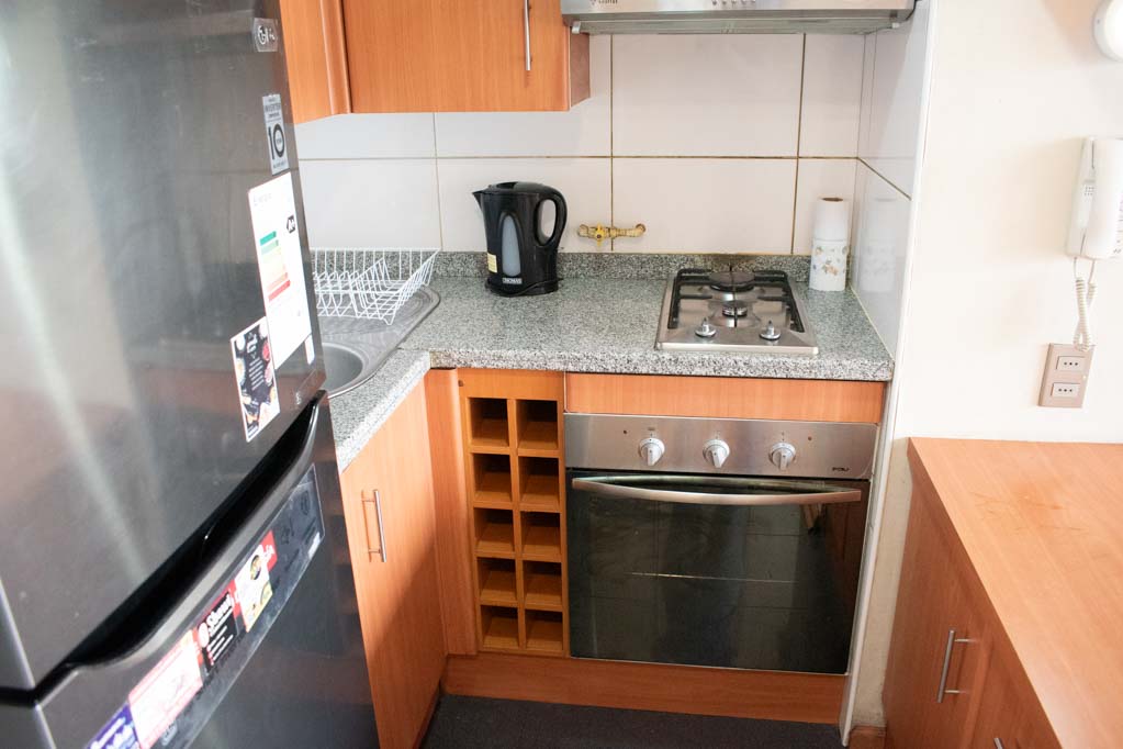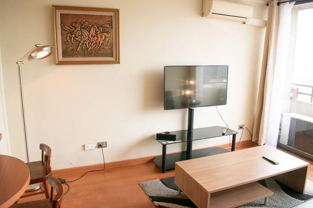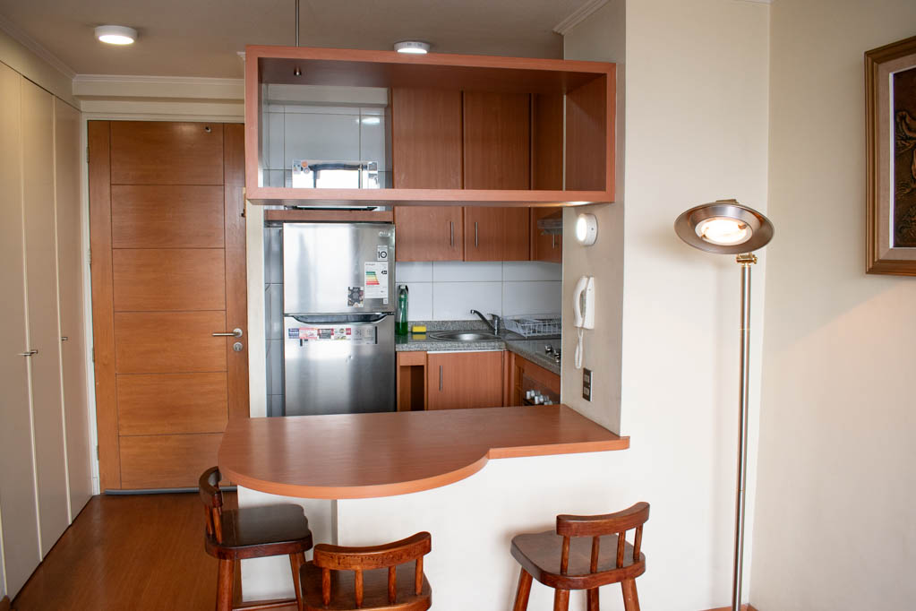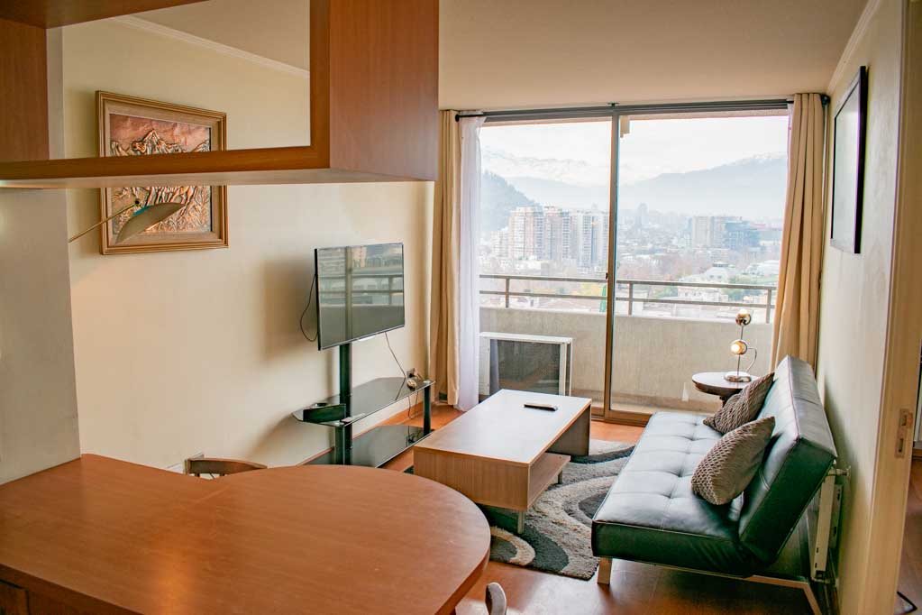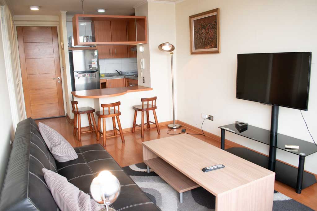 Departamento amoblado de 1 habitación ubicado a 1 minuto caminando de la parada de autobús y a 5 minutos caminando de la Estación de Metro Bellas Artes.El departamento tiene living, comedor, cocina (abierta), 1 baño y balcón. La habitación 1 tiene cama matrimonial, 2 clósets, 2 mesas de noche y baño en suite; El lugar mide 33m² + 2m² de terraza aproximadamente. Los gastos de servicios de gastos comunes, agua caliente, agua fría, electricidad y gas se pagan por adelantado junto a la renta mensual, con un límite de consumo de $ 136USD. El alojamiento tiene lavandería compartida cuyo valor es $ 1USD aproximadamente por carga de ropa (lavado o secado). Se debe pagar garantía (depósito) la que será devuelta al finalizar el período de arriendo; además, se debe pagar $ 45USD al momento de devolver el alojamiento para realizar la limpieza del lugar. Cerca del alojamiento se encuentra el Barrio Lastarria y Barrio Bellas Artes (barrios históricos - culturales), caracterizados por sus casonas del siglo XIX restauradas y utilizadas como restaurantes, cafeterías, librerías, centros culturales, entre otros. A pasos podrás encontrar el Museo Nacional de Bellas Artes, donde se resguarda lo más valioso del arte nacional e internacional y el Parque Forestal, lugar ideal para compartir con amigos, practicar deportes y pasear.