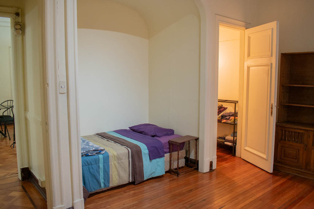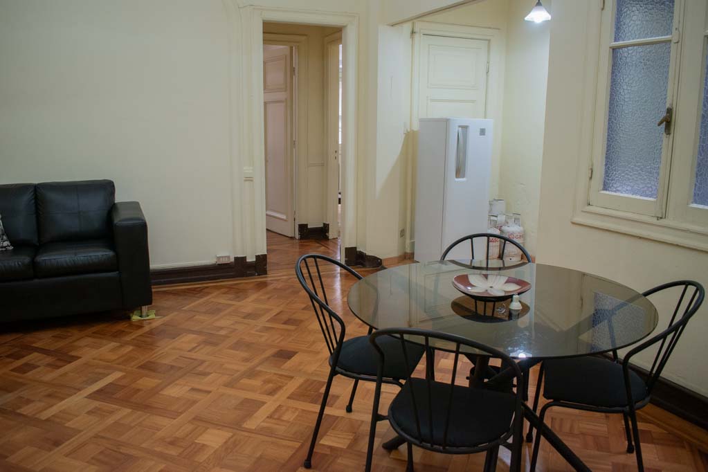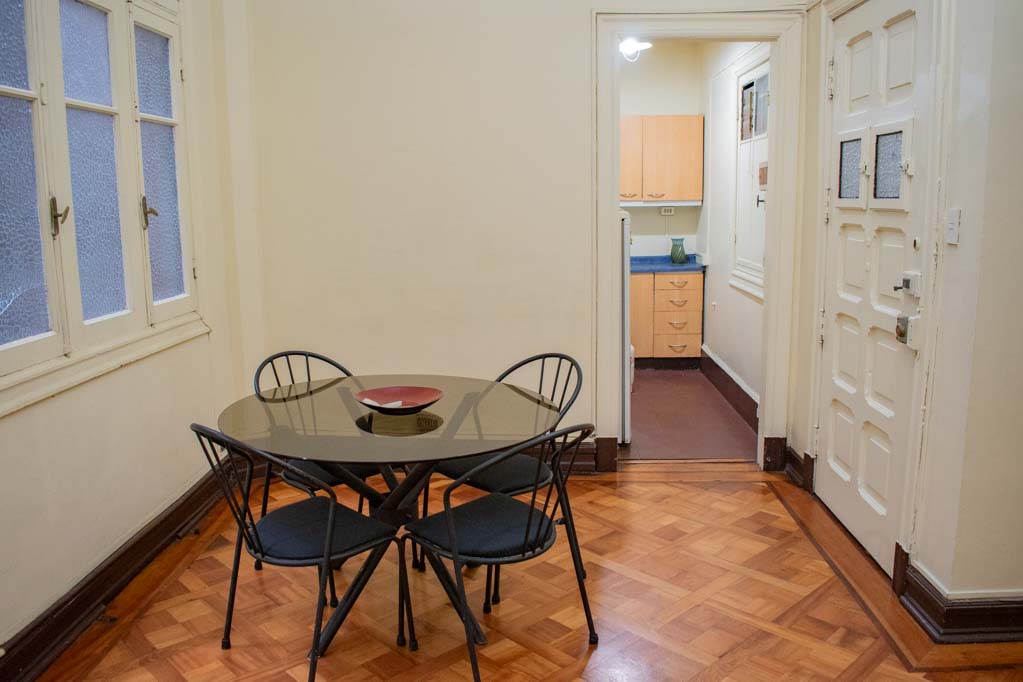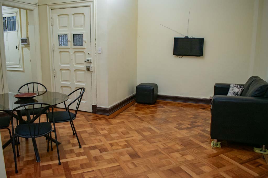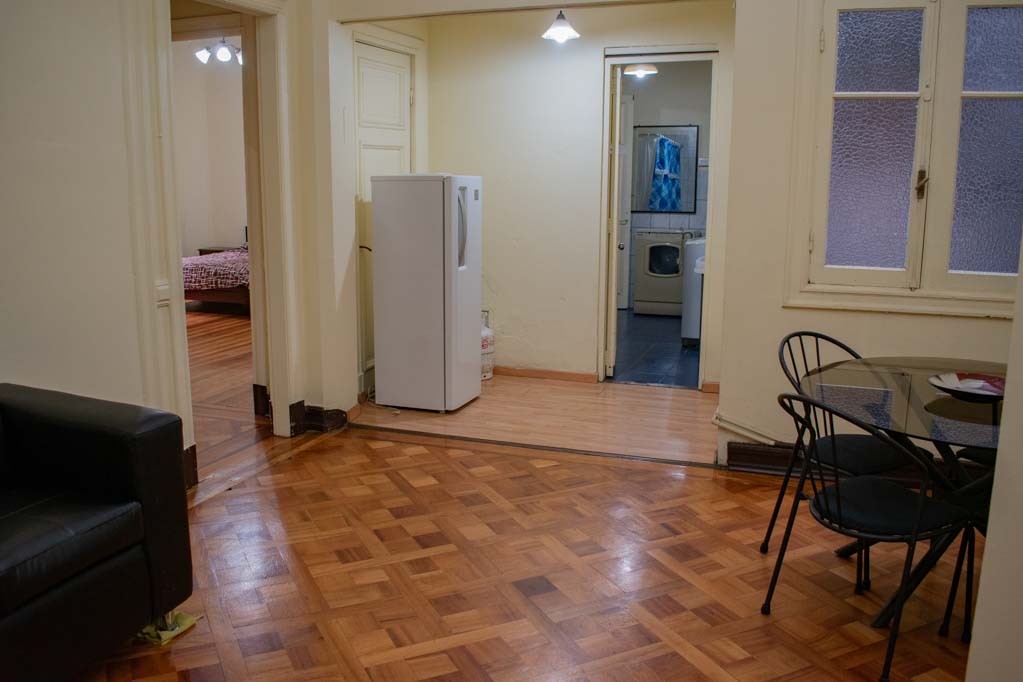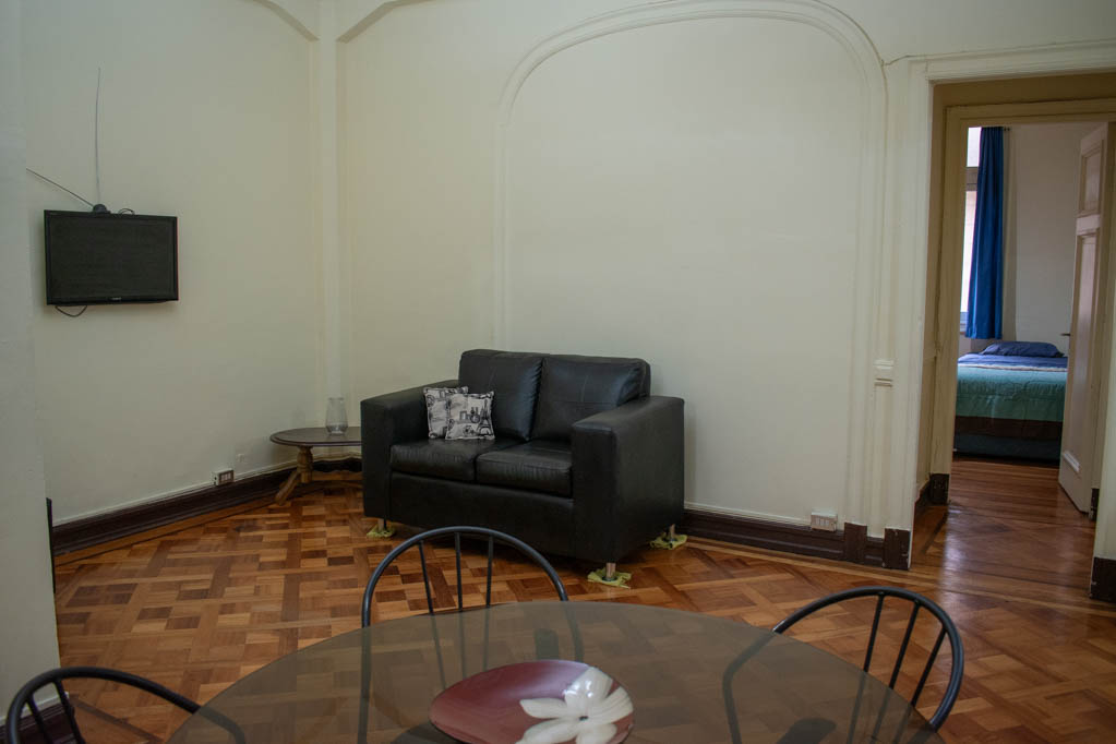 Departamento amoblado de 2 habitaciones ubicado a 2 minutos caminando de la parada de autobús y a 2 minutos caminando de la Estación de Metro Plaza de Armas.El departamento tiene living, comedor, cocina (cerrada) y 1 baño. La habitación 1 tiene cama matrimonial, clóset, 2 mesas de noche, televisor, escritorio y baño en suite; La habitación 2 tiene 2 camas individuales, walk-in clóset y silla; El lugar mide 100m² aproximadamente. Los gastos de servicios de gastos comunes y agua fría se pagan por adelantado junto a la renta mensual, con un límite de consumo de $ 124USD. Además, se debe considerar el pago de gastos de servicios de electricidad y gas que suman $ 51USD aproximadamente. Se debe pagar garantía (depósito) la que será devuelta al finalizar el período de arriendo; además, se debe pagar $ 45USD al momento de devolver el alojamiento para realizar la limpieza del lugar. Cerca del alojamiento se encuentra la Plaza de Armas de Santiago, parte importante del casco histórico de la ciudad, reconocida por su arquitectura e infraestructuras, tales como el Correo de Santiago, Catedral de Santiago, Municipalidad y la Casa Colorada. Este lugar, tiene buen acceso y conectividad con varios puntos de la ciudad. El sector se caracteriza por concentrar variadas instituciones de servicios públicos y privados.