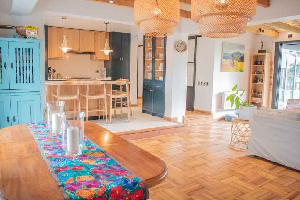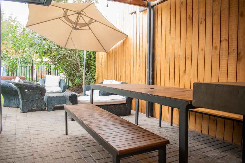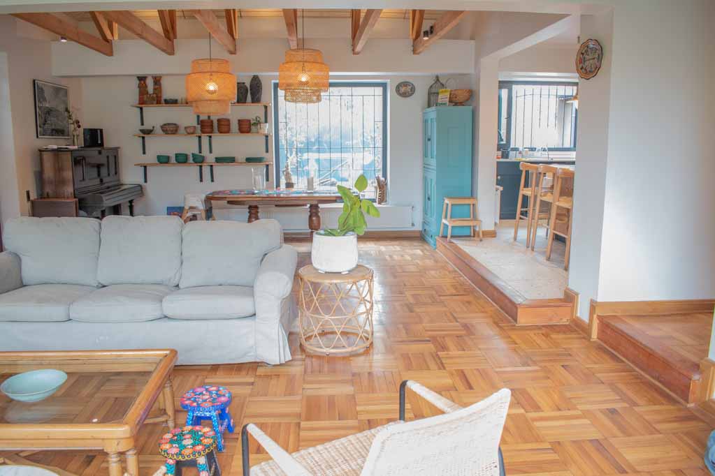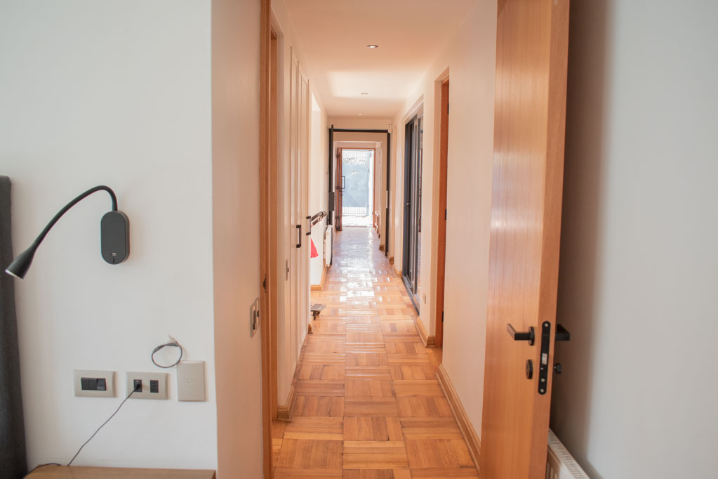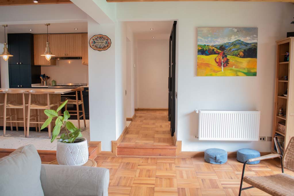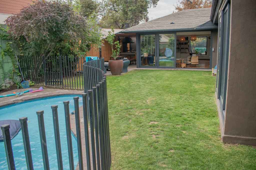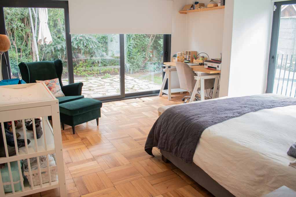Casa amoblada de 4 habitaciones ubicada a 5 minutos caminando de la parada de autobús.La casa tiene living, comedor, cocina (abierta), 4 baños, 1 ½ baño, sala de TV, patio y 2 estacionamientos. La habitación 1 tiene cama matrimonial, walk-in clóset, 2 mesas de noche, escritorio, silla y baño en suite; La habitación 2 tiene 2 camas individuales y mesa de noche; La habitación 3 tiene cama individual, clóset y mesa de noche; La habitación 4 tiene cama nido, escritorio, silla y baño en suite; El lugar mide 180m² aproximadamente. Se debe considerar el pago de gastos de servicios de agua fría, electricidad y gas que suman $ 8,679,746USD aproximadamente. Se debe pagar garantía (depósito) la que será devuelta al finalizar el período de arriendo. Cerca del alojamiento se encuentra gran cantidad de áreas verdes, galerías de arte, tiendas exclusivas y los restaurantes más elegantes de Santiago. Cerca podrás encontrar el Parque Bicentenario, 27 hectáreas de parque, especial para hacer deporte, disfrutar con familia o amigos de un picnic y observar lagunas artificiales con sus característicos cisnes de cuello negro, peces y algunos flamencos.