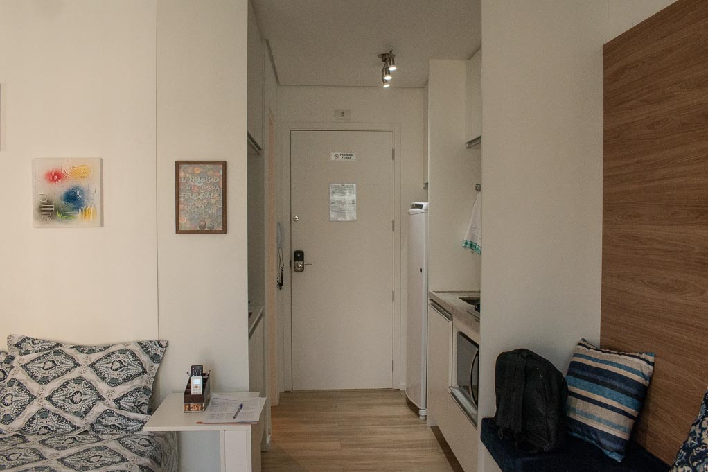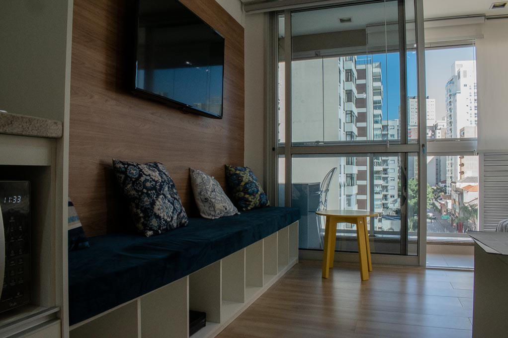 Departamento amoblado de un ambiente (studio) ubicado a 1 minuto caminando de la parada de autobús y a 4 minutos caminando de la Estación de Metro Higienópolis-Mackenzie.El departamento tiene living, cocina (kitchinette), 1 baño, balcón, sala de estar y 1 estacionamiento. La habitación 1 tiene cama matrimonial, armario, mesa de noche y televisor; El lugar mide 22m² + 4m² de terraza aproximadamente. Los gastos de servicios de gastos comunes, agua caliente, agua fría, internet y TV cable se pagan por adelantado junto a la renta mensual, con un límite de consumo de $ 148USD. Además, se debe considerar el pago de gastos de servicios de electricidad que suman $ 33USD aproximadamente. El alojamiento tiene lavandería compartida cuyo valor es $ 1USD aproximadamente por carga de ropa (lavado o secado). Se debe pagar garantía (depósito) la que será devuelta al finalizar el período de arriendo; además, se debe pagar $ 19USD al momento de devolver el alojamiento para realizar la limpieza del lugar. Cerca del alojamiento se encuentra una de las regiones más entretenidas de la ciudad, conocida como Baixo Augusta, con diversos restaurantes, bares y espacios culturales. A pocos minutos caminando, llegarás al Parque Augusta que es un lugar ideal para relajarse o practicar ejercicios al aire libre y también, a la Avenida Paulista que es una de las avenidas más importantes de la ciudad; el sector es considerada uno de los principales centros financieros de Brasil, además de poseer diversos puntos de interés turístico y cultural. Tiene fácil acceso al transporte público, con conexión rápida a otras partes de la ciudad.
