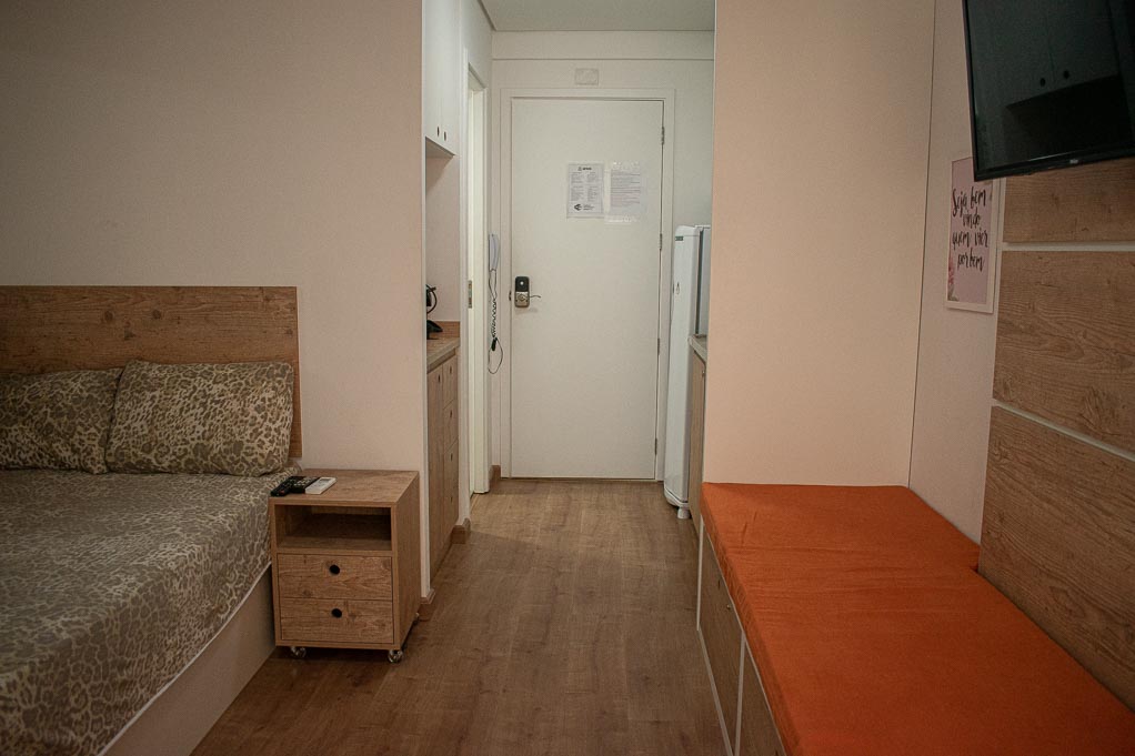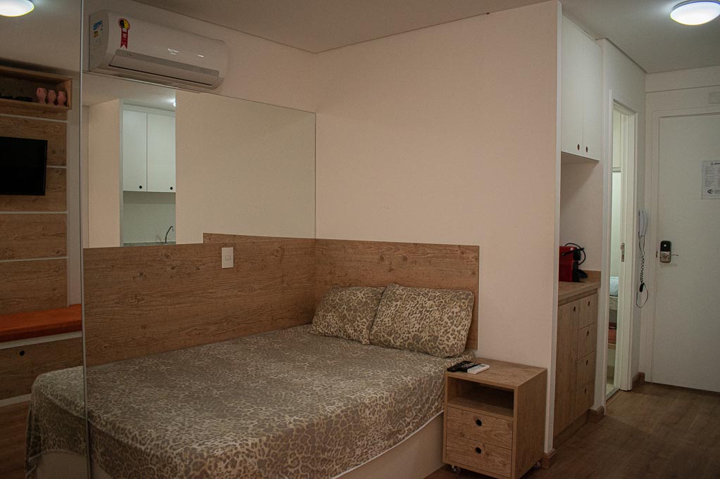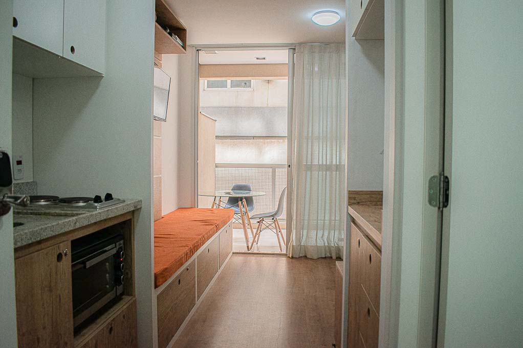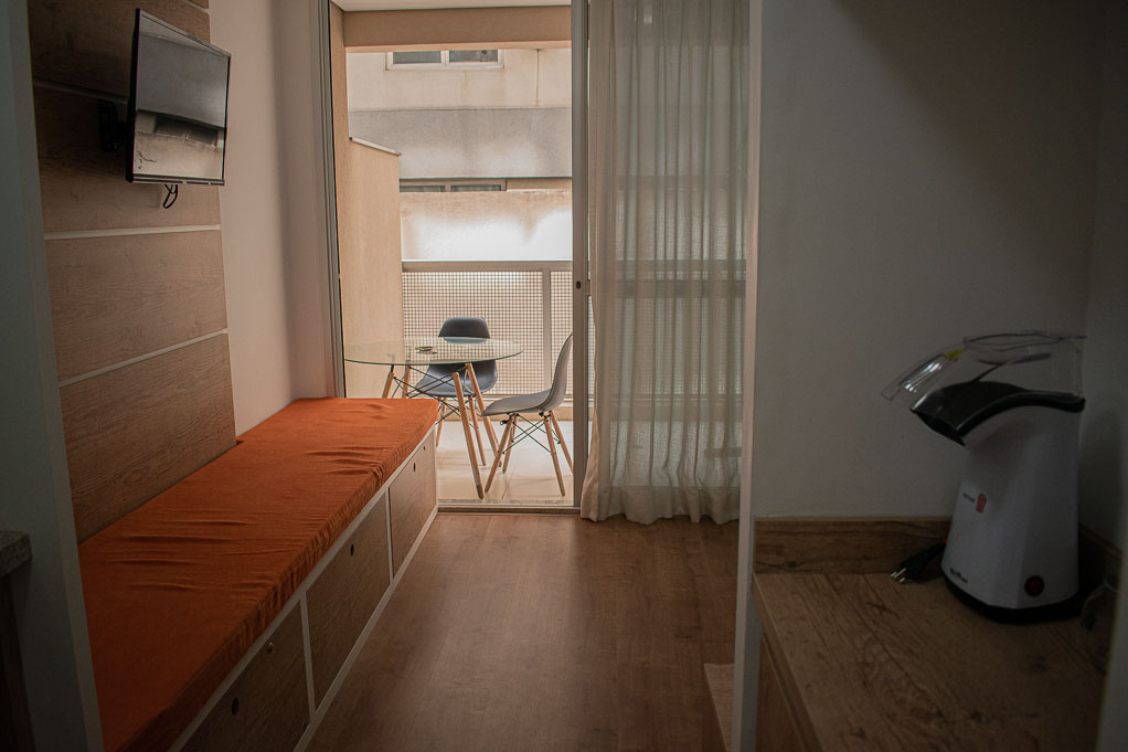 Departamento amoblado de un ambiente (studio) ubicado a 1 minuto caminando de la parada de autobús y a 4 minutos caminando de la Estación de Metro Higienópolis-Mackenzie.El departamento tiene living, cocina (kitchinette), 1 baño, balcón, sala de estar y 1 estacionamiento. La habitación 1 tiene cama matrimonial, armario, mesa de noche y televisor; El lugar mide 22m² + 4m² de terraza aproximadamente. Los gastos de servicios de gastos comunes, agua caliente, agua fría, internet y TV cable se pagan por adelantado junto a la renta mensual, con un límite de consumo de $ 125USD. Además, se debe considerar el pago de gastos de servicios de electricidad que suman $ 19USD aproximadamente. El alojamiento tiene lavandería compartida cuyo valor es $ 1USD aproximadamente por carga de ropa (lavado o secado). Se debe pagar garantía (depósito) la que será devuelta al finalizar el período de arriendo; además, se debe pagar $ 19USD al momento de devolver el alojamiento para realizar la limpieza del lugar. Cerca del alojamiento se encuentra una de las regiones más entretenidas de la ciudad, conocida como Baixo Augusta, con diversos restaurantes, bares y espacios culturales. A pocos minutos caminando, llegarás al Parque Augusta que es un lugar ideal para relajarse o practicar ejercicios al aire libre y también, a la Avenida Paulista que es una de las avenidas más importantes de la ciudad; el sector es considerada uno de los principales centros financieros de Brasil, además de poseer diversos puntos de interés turístico y cultural. Tiene fácil acceso al transporte público, con conexión rápida a otras partes de la ciudad.