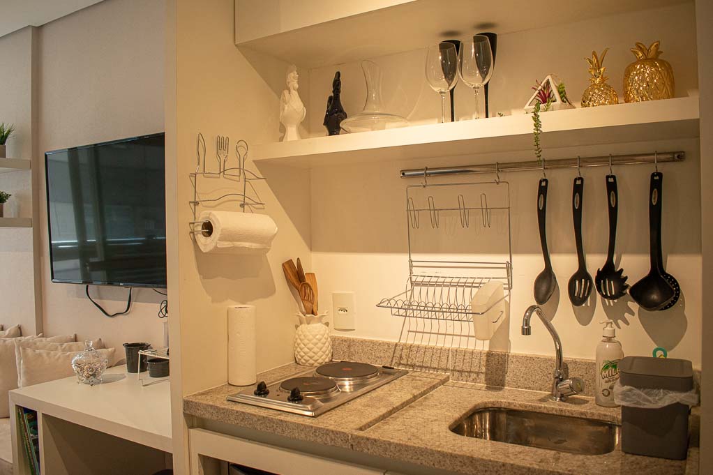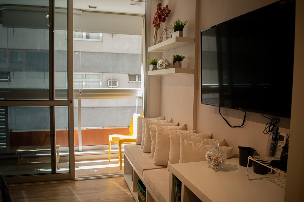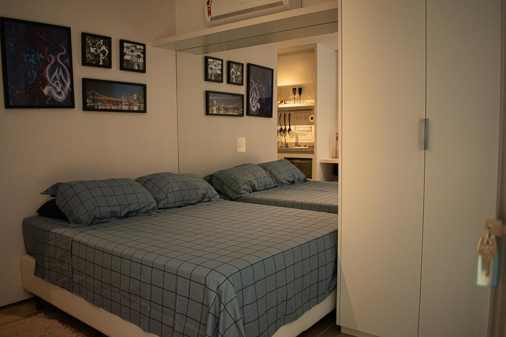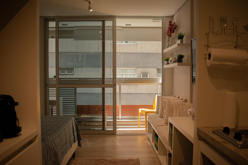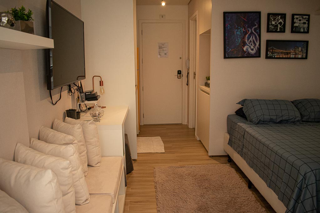 Departamento amoblado de un ambiente (studio) ubicado a 1 minuto caminando de la parada de autobús y a 4 minutos caminando de la Estación de Metro Higienópolis-Mackenzie.El departamento tiene living, cocina (kitchinette), 1 baño, balcón y sala de estar. La habitación 1 tiene cama matrimonial, armario y televisor; El lugar mide 22m² + 4m² de terraza aproximadamente. Los gastos de servicios de gastos comunes, agua caliente, agua fría, internet y TV cable se pagan por adelantado junto a la renta mensual, con un límite de consumo de $ 158USD. Además, se debe considerar el pago de gastos de servicios de electricidad que suman $ 35USD aproximadamente. El alojamiento tiene lavandería compartida cuyo valor es $ 1USD aproximadamente por carga de ropa (lavado o secado). Se debe pagar garantía (depósito) la que será devuelta al finalizar el período de arriendo; además, se debe pagar $ 20USD al momento de devolver el alojamiento para realizar la limpieza del lugar. Cerca del alojamiento se encuentra una de las regiones más entretenidas de la ciudad, conocida como Baixo Augusta, con diversos restaurantes, bares y espacios culturales. A pocos minutos caminando, llegarás al Parque Augusta que es un lugar ideal para relajarse o practicar ejercicios al aire libre y también, a la Avenida Paulista que es una de las avenidas más importantes de la ciudad; el sector es considerada uno de los principales centros financieros de Brasil, además de poseer diversos puntos de interés turístico y cultural. Tiene fácil acceso al transporte público, con conexión rápida a otras partes de la ciudad.