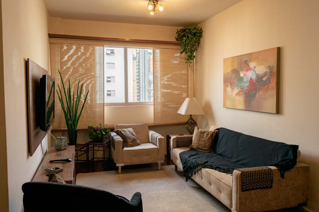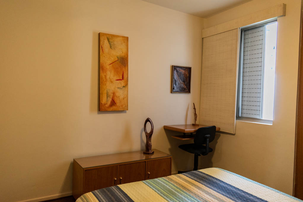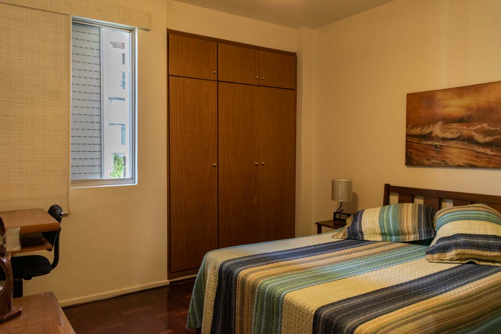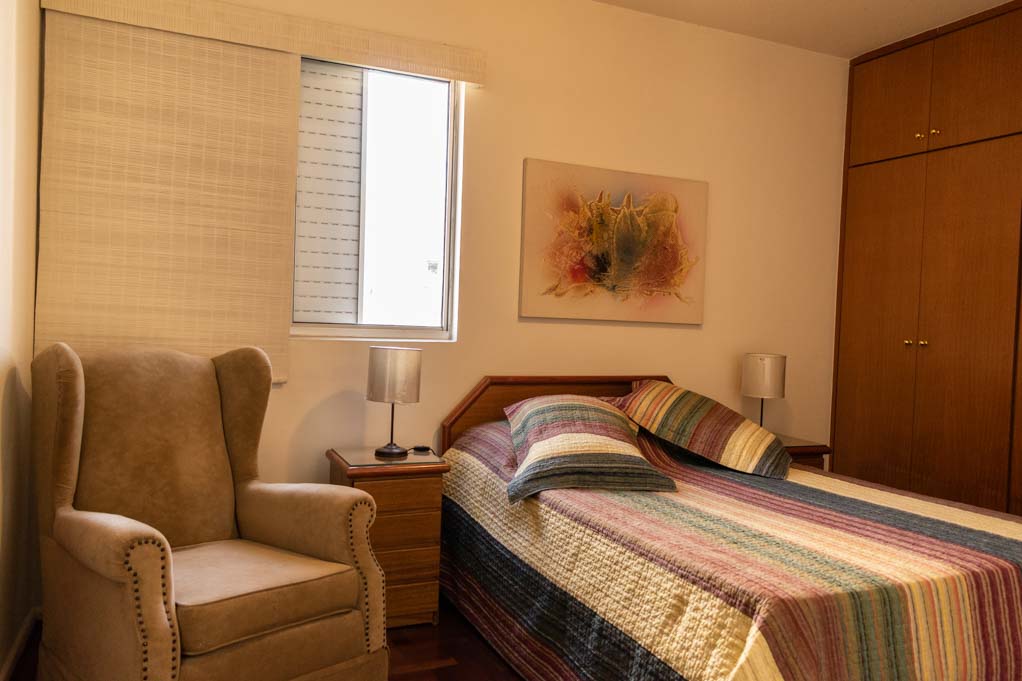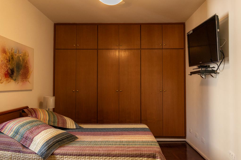 Departamento amoblado de 2 habitaciones ubicado a 4 minutos caminando de la parada de autobús y a 9 minutos caminando de la Estación de Metro Moema.El departamento tiene living, comedor, cocina (cerrada), 2 baños, 2 ½ baños, sala de estar y 3 estacionamientos. La habitación 1 tiene cama matrimonial, clóset, 2 mesas de noche, escritorio, silla y baño en suite; La habitación 2 tiene cama matrimonial, clóset, 2 mesas de noche, sofá, televisor y baño en suite; El lugar mide 90m² aproximadamente. Los gastos de servicios de gastos comunes, agua caliente, agua fría, electricidad e impuesto (IPTU) se pagan por adelantado junto a la renta mensual, con un límite de consumo de $ 332USD. Además, se debe considerar el pago de gastos de servicios de gas, internet y TV cable que suman $ 103USD aproximadamente. Se debe pagar garantía (depósito) la que será devuelta al finalizar el período de arriendo; además, se debe pagar $ 32USD al momento de devolver el alojamiento para realizar la limpieza del lugar. Cerca del alojamiento se encuentra el aeropuerto de Congonhas y gran variedad de comercio alrededor. Este sector es muy tranquilo, residencial y, además, posee muchas áreas verdes. El conocido Parque das Bicicletas y el Parque do Ibirapuera, que es el más grande de la ciudad, se encuentran a pocos minutos de distancia. Tiene fácil acceso al transporte público y conexión rápida a otras partes de la ciudad.
