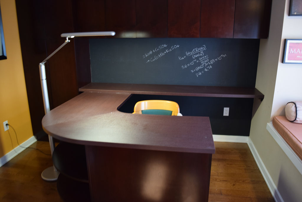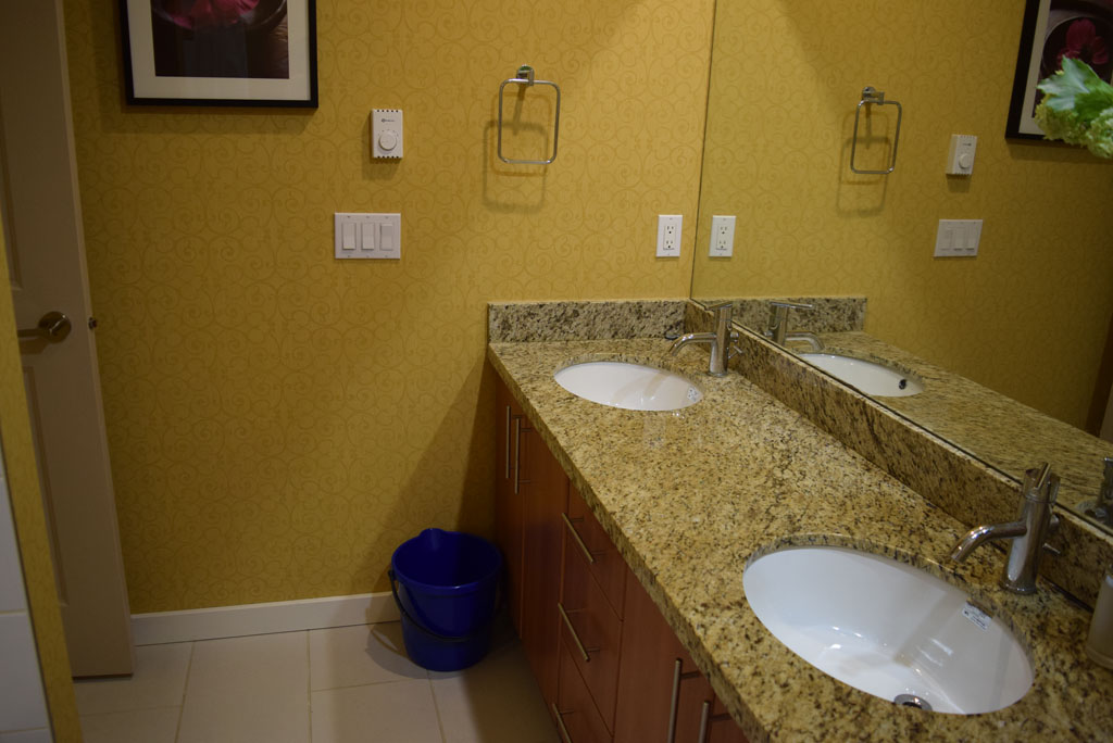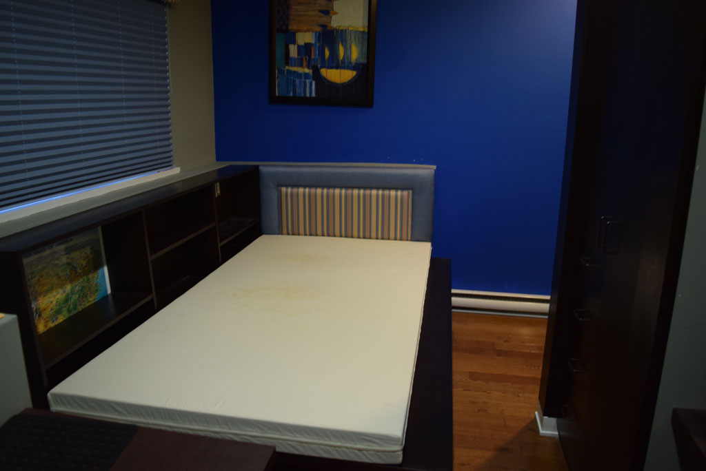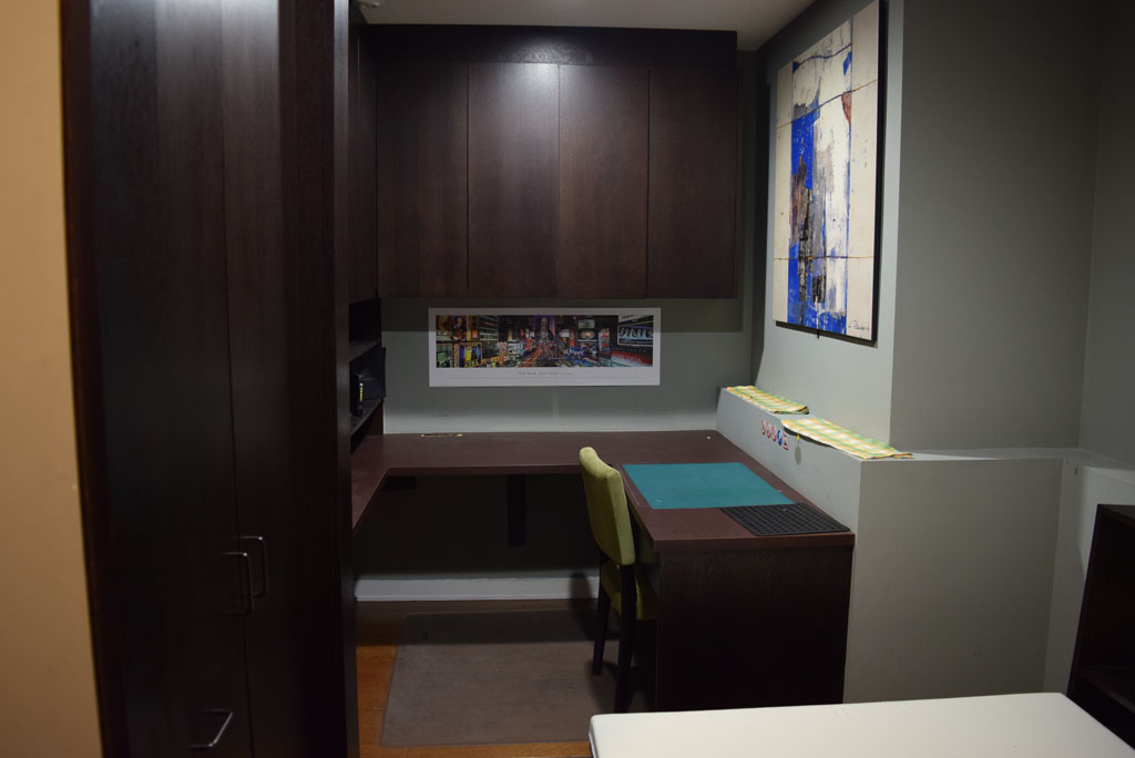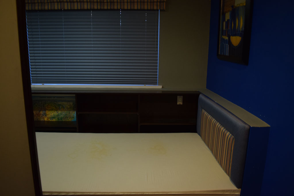 The unit has a living room, kitchen, and 3 bathrooms. The bedroom 1 has a queen size bed, nightstand, desk, closet, and drawers; the bedroom 2 has a twin size bed, desk and drawers; the bedroom 3 has a twin size bed, desk, and drawers. The space measures 1500 ft² + 300 ft² of patio approximately.