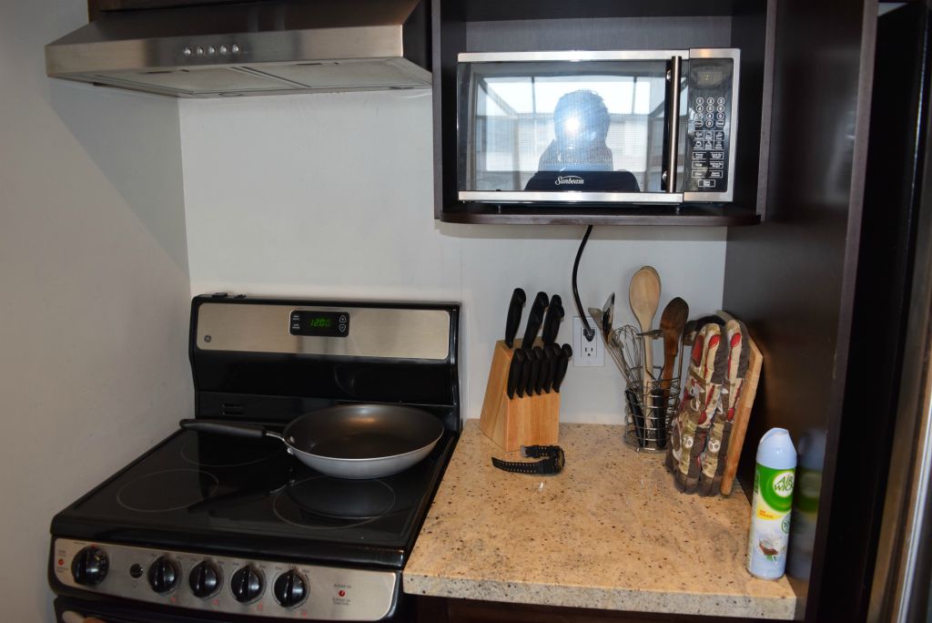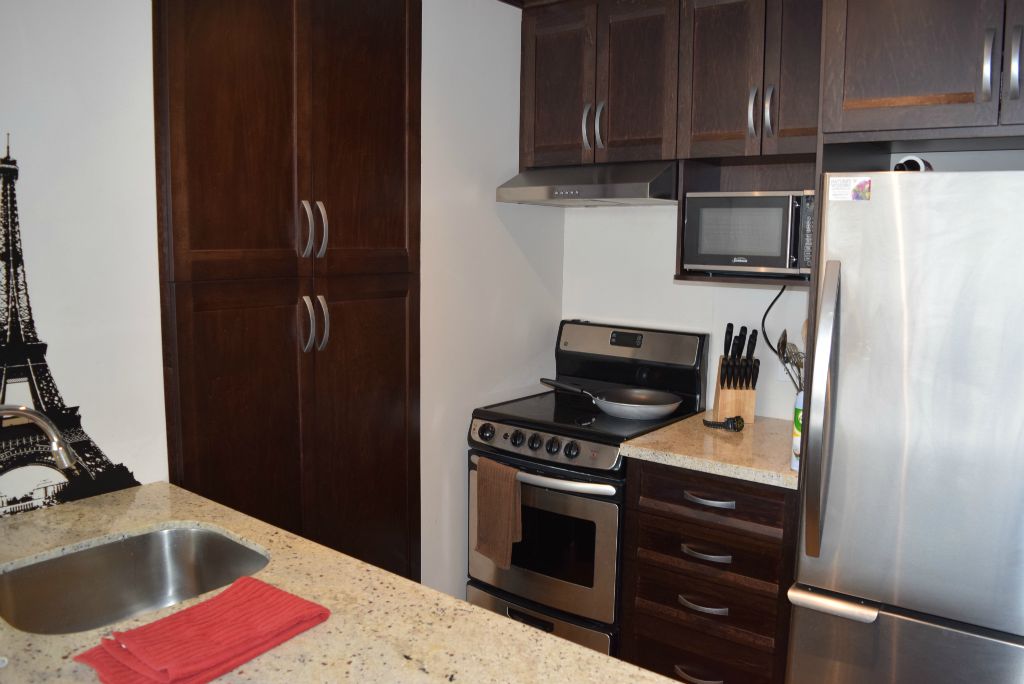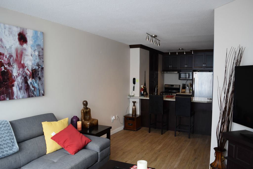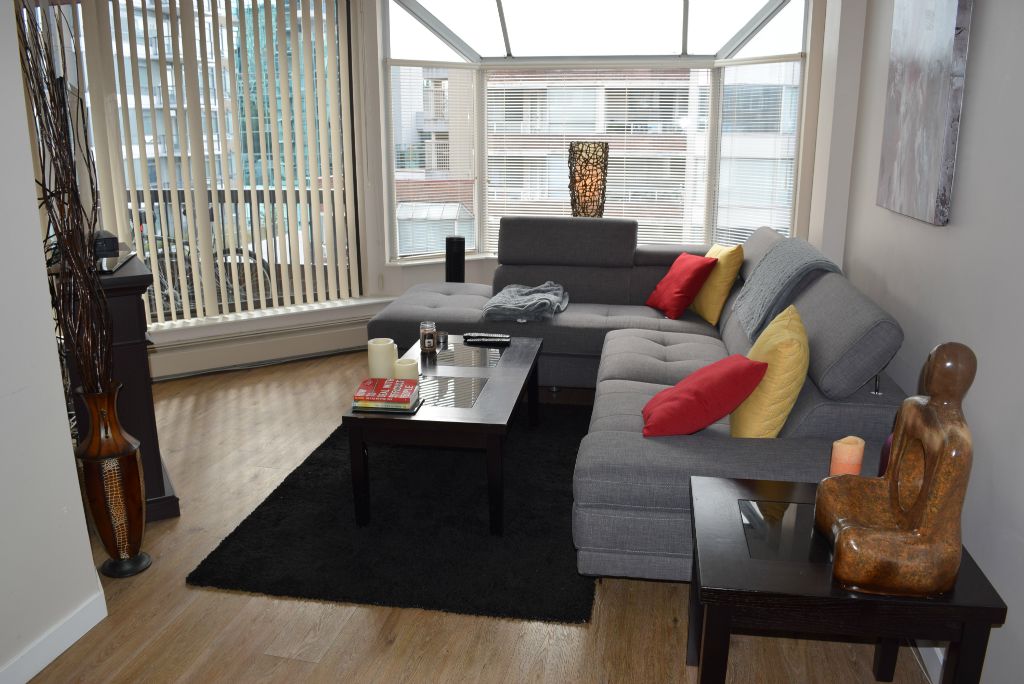 1 bedroom furnished apartment is located 5 minute walk from a bus stop, and 10 minute walk from Burrard Street Metro station.