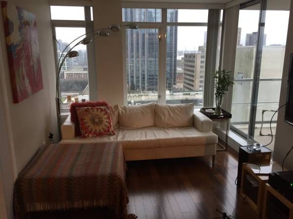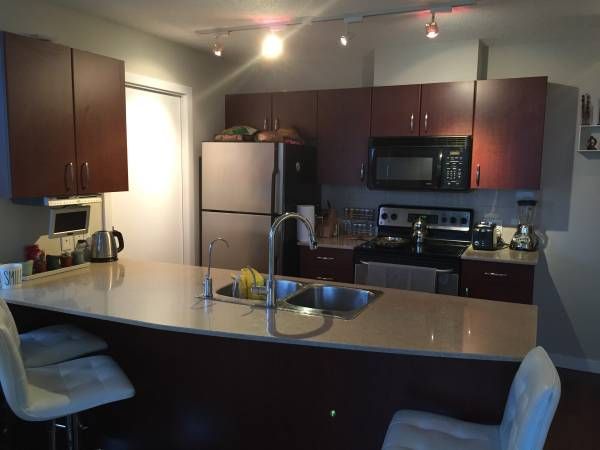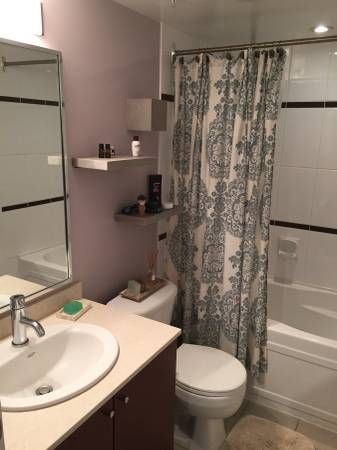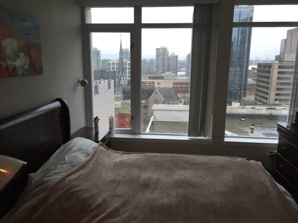 This 1 bedroom and den furnished apartment, is located a 2 minute walk from the bus stop, and a 10 minutes' walk from the Vancouver City Centre Metro station.