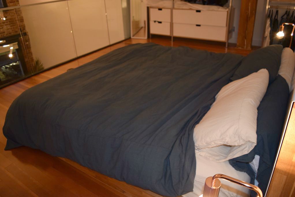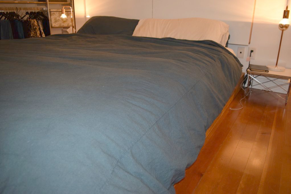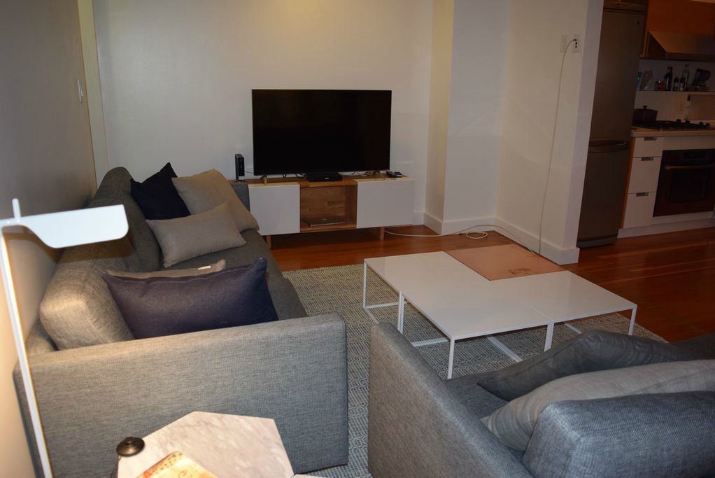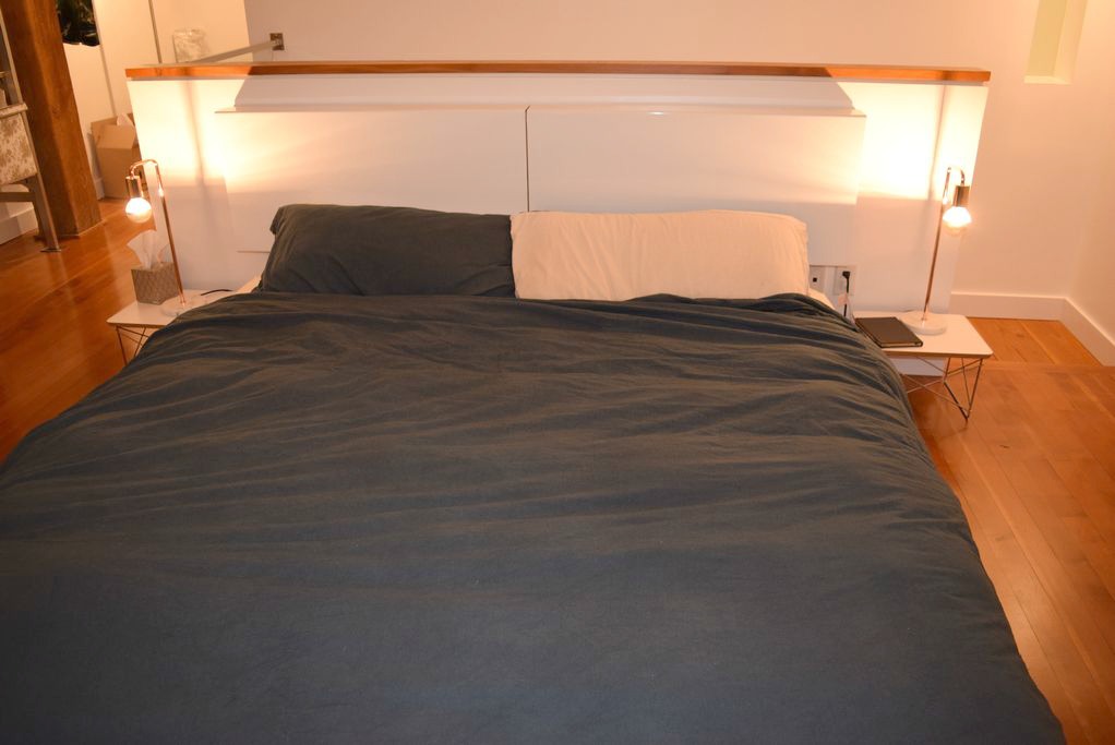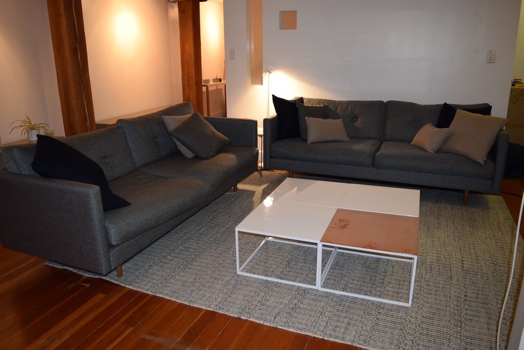 The unit has a living room, kitchen and two washrooms. The bedroom has a king size bed, nightstand and closet. The space measures 1200 ft² + 600 ft² on the rooftop approximately.