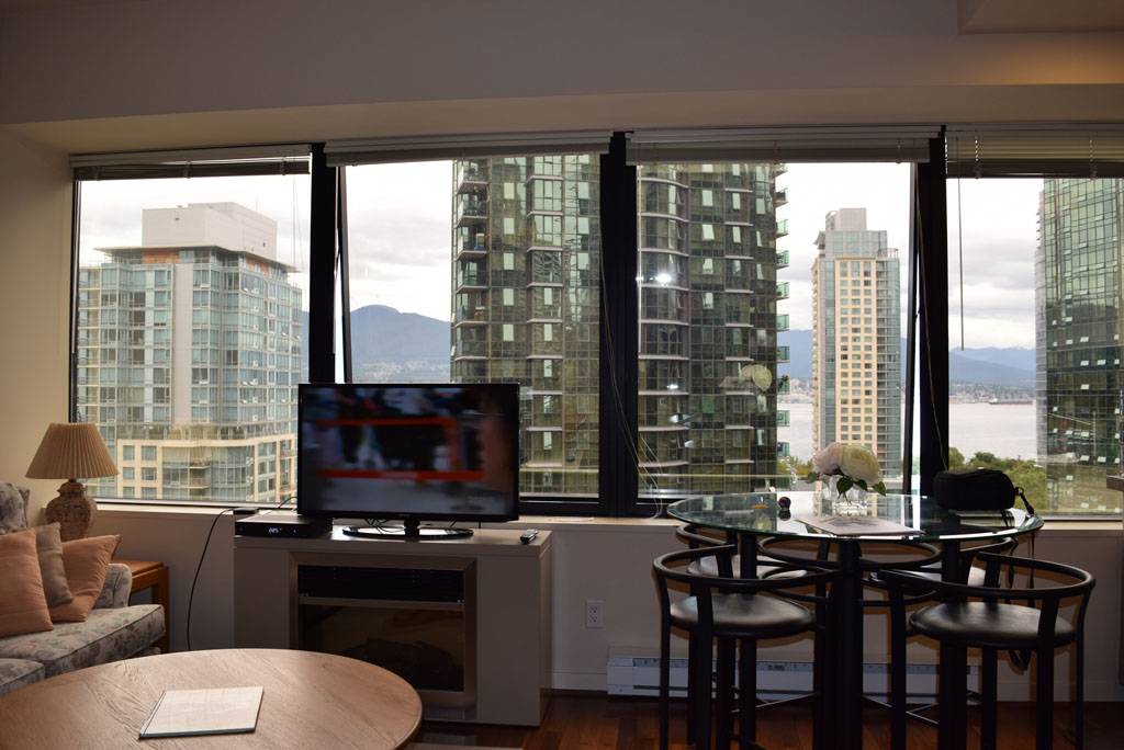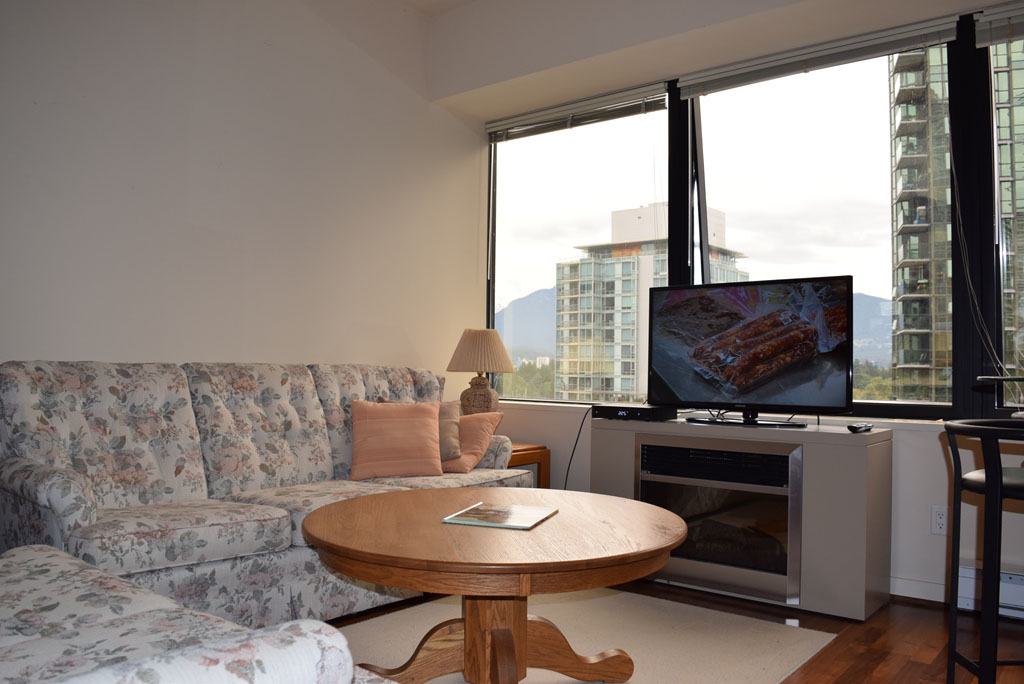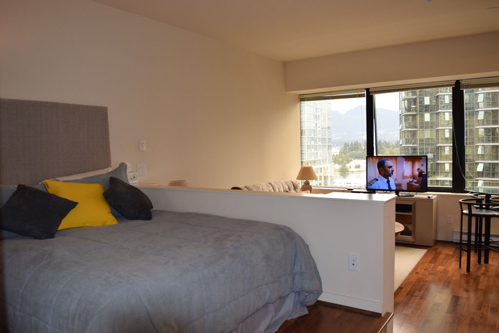 1 furnished studio (one environment) apartment, located 5 minute walk from bus stop, and 10 minute walk from Burrard Metro station.