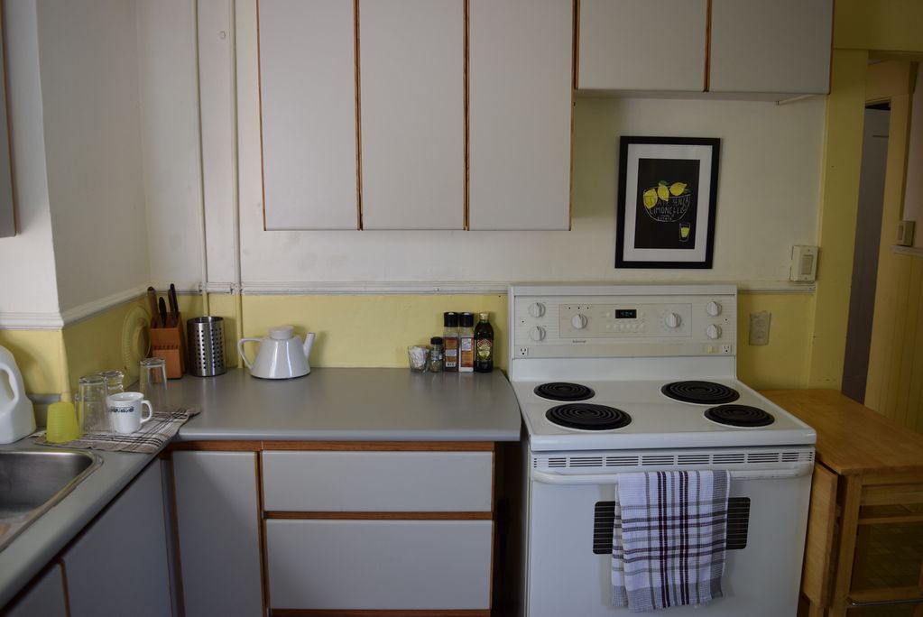 The unit has a shared kitchen, and bathroom. Each Bedroom has a queen size bed, desk, closet, and drawers.