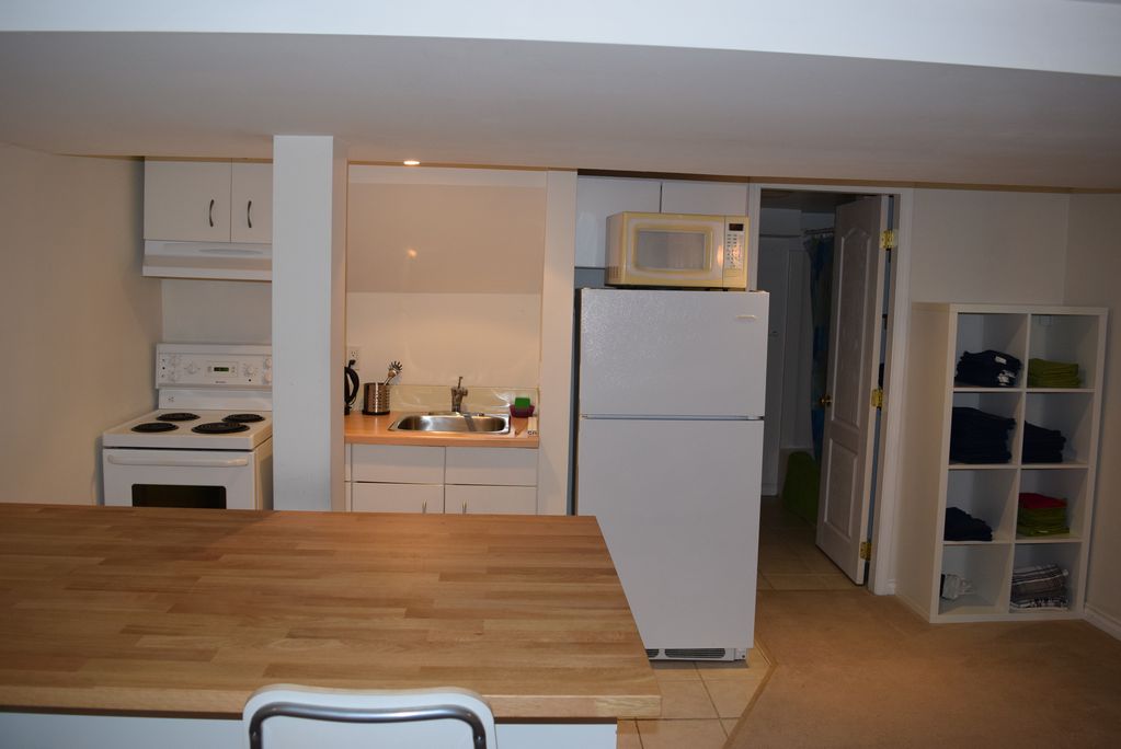 The unit has a shared kitchen, and bathroom. Each Bedroom has a queen size bed, desk, closet, and drawers.