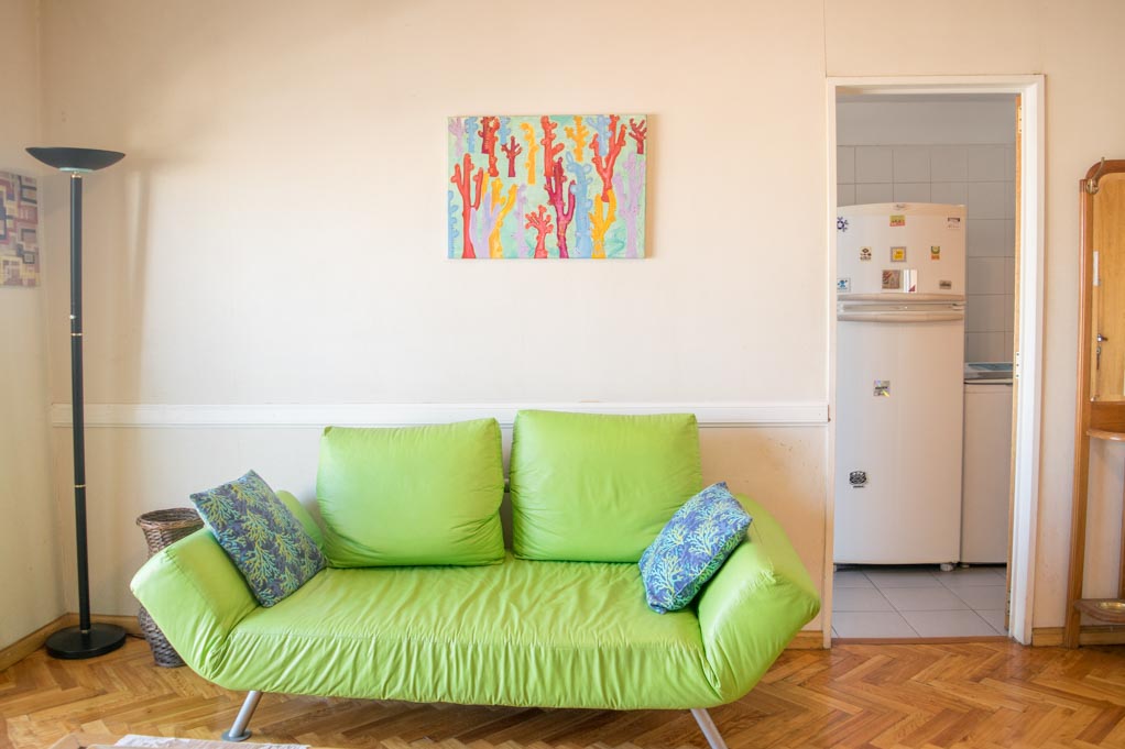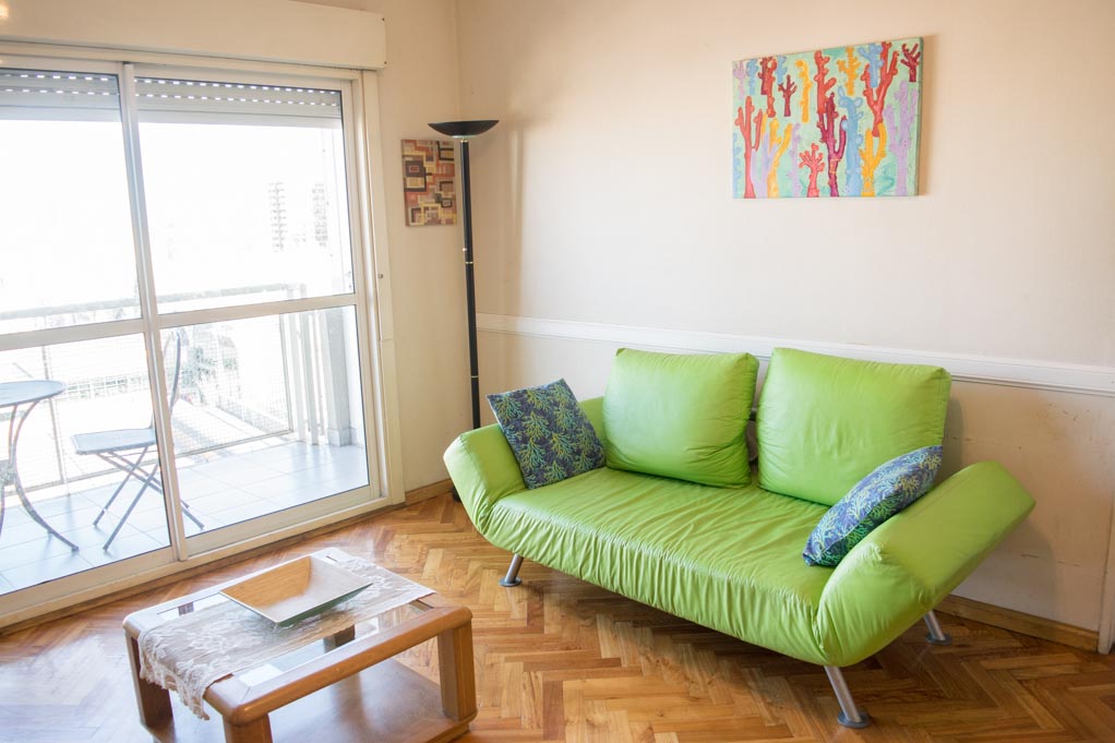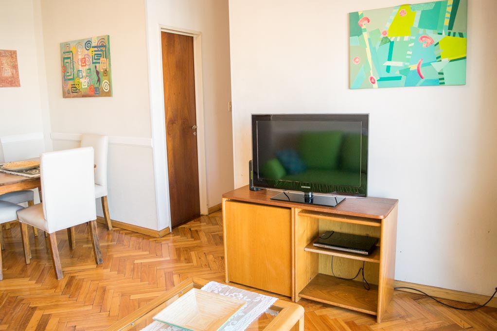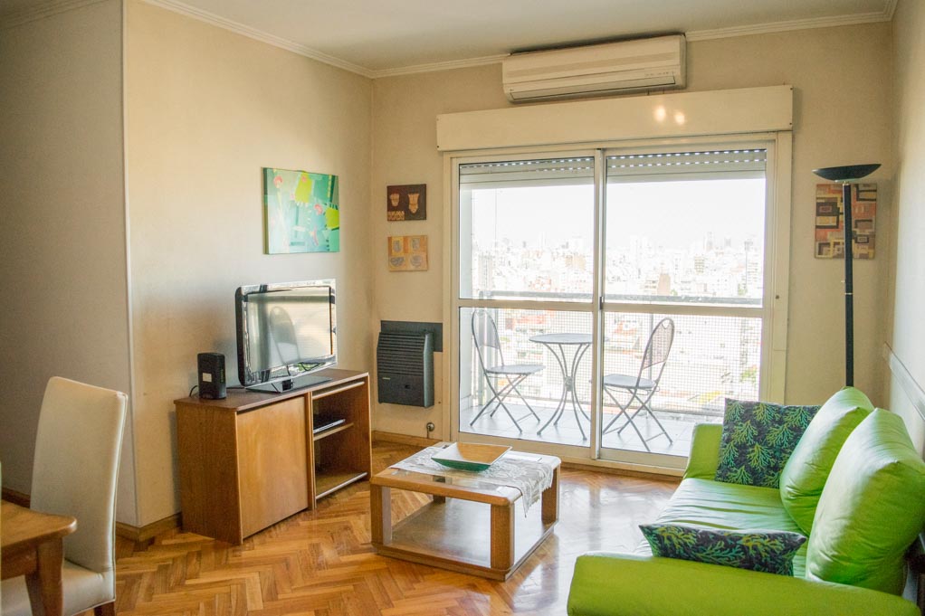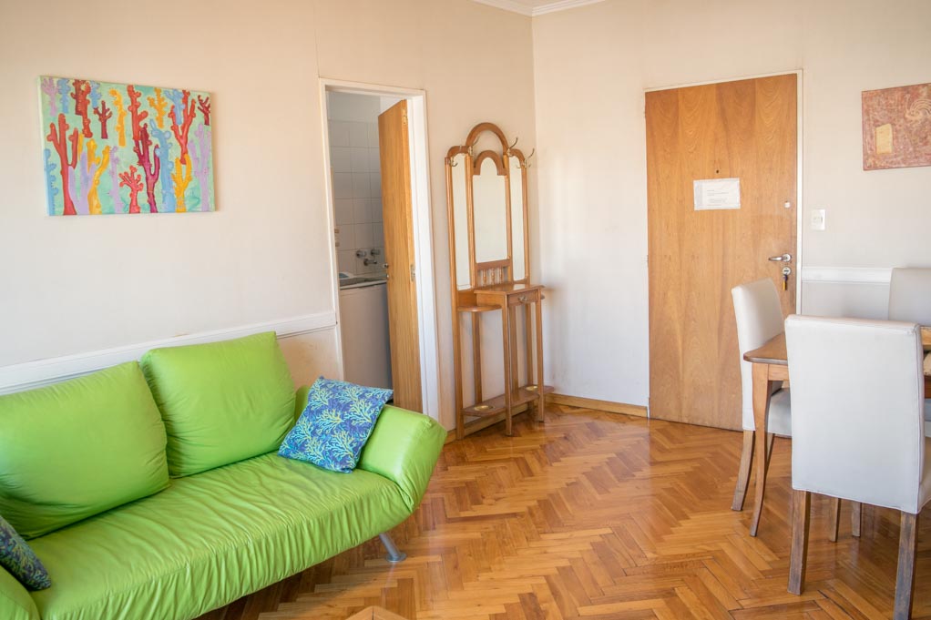 Apartamento mobiliado de 2 dormitórios localizado a 1 minuto caminhando da parada de ônibus e a 4 minutos caminhando da Estação de Metrô Carlos Gardel.O apartamento tem living, comedor, cozinha (fechada), 1 banheiro, 1 ½ banheiro e varanda. O quarto 1 tem cama de casal, roupeiro e 2 mesas de cabeceira. O quarto 2 tem cama de solteiro, roupeiro, mesa de cabeceira e cadeira. O lugar mede 60m² + 4m² de terraço aproximadamente. O custo dos serviços de condominio, água quente, água fria, eletricidade, gás, internet, TV a cabo e aquecimento deve ser pago antecipadamente com o aluguel mensal, com um limite de consumo de $ 5USD. Você deve pagar depósito de segurança, que será devolvido no final do período de locação; Também deve pagar $ 1USD ao momento de devolver o departamento para a limpeza do lugar. Próximo ao alojamento está se encontra o centro comercial Abasto (Ex - Mercado Central de Frutas). Esta área é caracterizada pela sua grande variedade de restaurantes, bares, museus e teatros que fazem referência ao estilo musical popular de Buenos Aires: "El Tango". Ele está localizado perto de algumas das avenidas mais movimentadas, como a Avenida Córdoba, Pueyrredón e Corrientes, onde você terá aceso vários meios de transporte público para ir a várias partes da cidade.