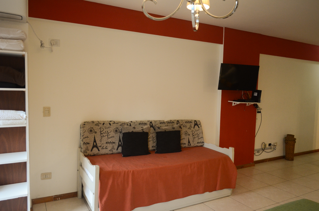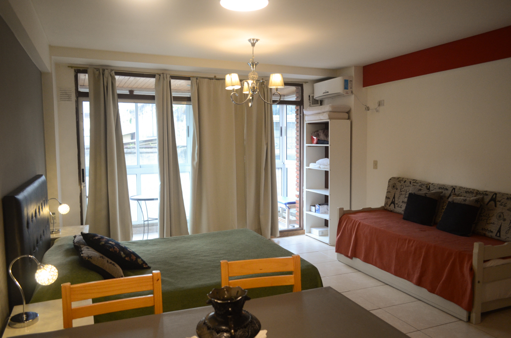 Apartamento mobiliado de um estudio localizado a 3 minutos caminhando da parada de ônibus.O apartamento tem living, cozinha (aberta), 1 banheiro e varanda. O quarto 1 tem cama de casal, mesa de cabeceira, sofá e TV. O lugar mede 38m² + 8m² de terraço aproximadamente. O custo dos serviços de condomínio, água quente, água fria, eletricidade, gás, internet, TV a cabo e aquecimento deve ser pago antecipadamente com o aluguel mensal, com um limite de consumo de $ 80USD. Você deve pagar depósito de segurança, que será devolvido no final do período de locação; Também deve pagar $ 12USD ao momento de devolver o imóvel para a limpeza do lugar. Próximo ao imóvel está a Plaza Almagro, um espaço verde para atividades ao ar livre. Este parque é projetado para toda a família, já que possui áreas esportivas como quadras de futebol e basquete, áreas de descanso e jogos para crianças. É um bairro tranquilo, com restaurantes e centros culturais, também tem bom acesso a diversos meios de transporte público.