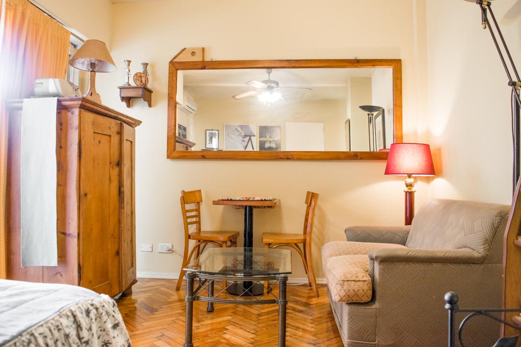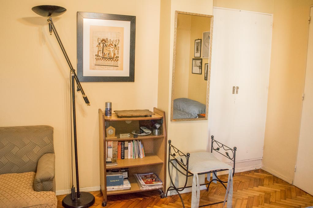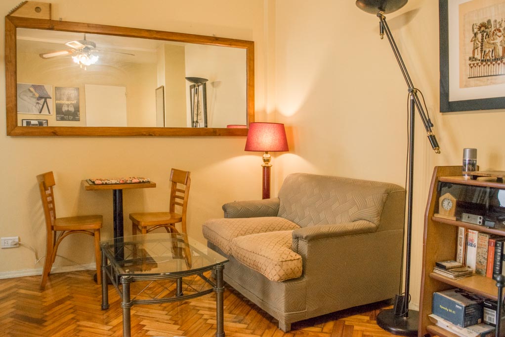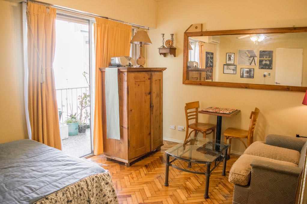 Apartamento mobiliado de 1 dormitório localizado a 1 minuto caminhando da parada de ônibus e a 4 minutos caminhando da Estação de Metrô Uruguay.O apartamento tem living, comedor, cozinha (fechada), 1 banheiro e varanda. O quarto 1 tem cama de casal, roupeiro, sofá, escrivaninha e 2 cadeiras. O lugar mede 30m² + 2m² de terraço aproximadamente. O custo dos serviços de condominio, água quente, água fria, eletricidade, gás, internet e aquecimento deve ser pago antecipadamente com o aluguel mensal, com um limite de consumo de $ 4USD. Você deve pagar depósito de segurança, que será devolvido no final do período de locação. Próximo ao alojamento está a Avenida Corrientes, conhecida por seus teatros e sua bela vista do Obelisco. Perto desta avenida está o Teatro Colón, um teatro de ópera considerado um dos melhores do mundo. À sua frente está o Palácio da Justiça, mais conhecido como Tribunais. Além disso, a área possui edifícios de grande valor histórico e arquitetônico. Também tem acesso fácil e rápido ao transporte público.