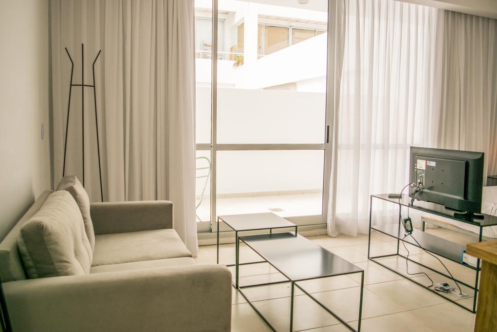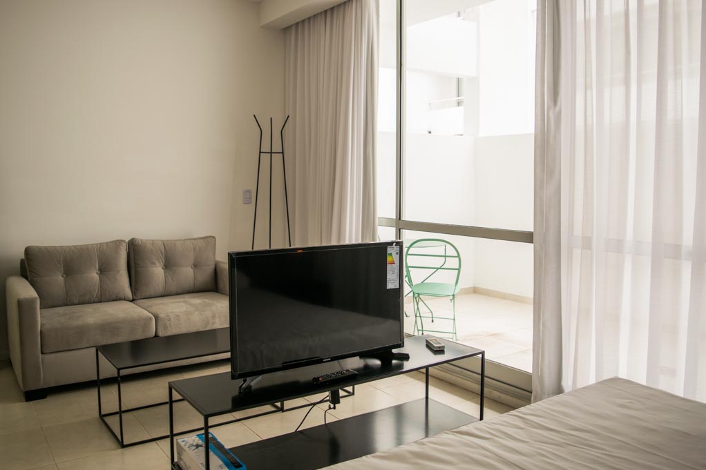 Apartamento mobiliado de um estudio localizado a 1 minuto caminhando da parada de ônibus e a 7 minutos caminhando da Estação de Metrô Plaza de Mayo.O apartamento tem living, comedor, cozinha (kitchinette), 1 banheiro e terraço. O quarto 1 tem cama de casal, 2 mesas de cabeceira, sofá, TV e banheiro privado. O lugar mede 20m² + 5m² de terraço aproximadamente. O custo dos serviços de condominio, água quente, água fria, eletricidade, internet, TV a cabo, limpeza quinzenal e aquecimento deve ser pago antecipadamente com o aluguel mensal, com um limite de consumo de $ 8USD. O alojamiento tem lavanderia cujo valor é $ 0USD aproximadamente por carga de roupa (lavagem e secagem). Você deve pagar depósito de segurança, que será devolvido no final do período de locação.