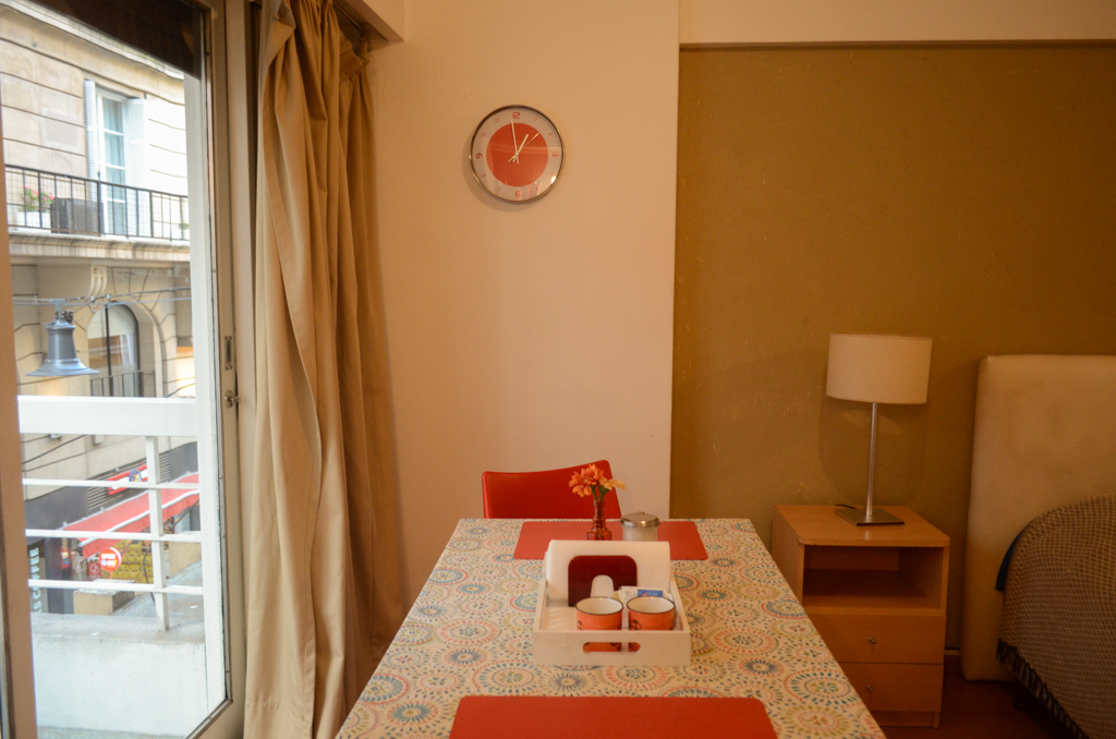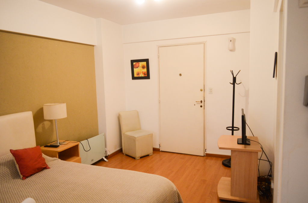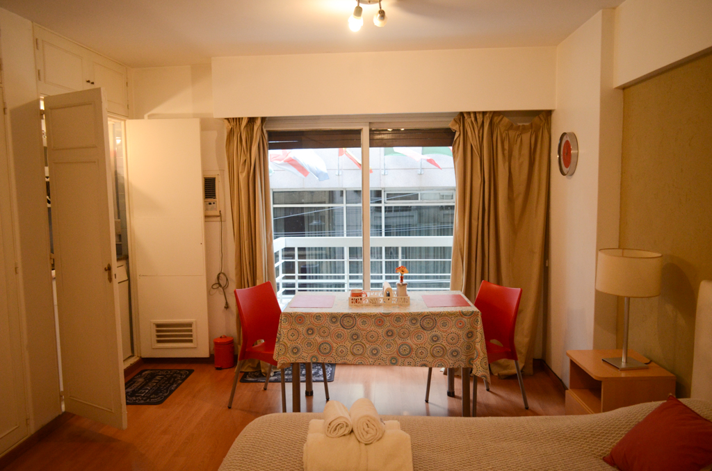 Apartamento mobiliado de um estudio localizado a 2 minutos caminhando da parada de ônibus e a 3 minutos caminhando da Estação de Metrô San Martín.O apartamento tem cozinha (kitchinette), 1 banheiro e varanda. O quarto 1 tem cama de casal, guarda-roupa, mesa de cabeceira, sofá, TV e banheiro privado. O lugar mede 28m² + 5m² de terraço aproximadamente. O custo dos serviços de condomínio, água quente, água fria, eletricidade, gás, internet, TV a cabo e aquecimento deve ser pago antecipadamente com o aluguel mensal, com um limite de consumo de $ 1USD. Você deve pagar depósito de segurança, que será devolvido no final do período de locação. Próximo ao imóvel está rua Florida, uma das ruas mais conhecidos e mais movimentados de Buenos Aires. Esta é uma área altamente comercial, uma vez que tem vários negócios, incluindo o centro comercial Galerias Pacífico. Nesta rua e seus arredores você pode ver barracas de música ao vivo, demonstrações de dança, entretenimento para crianças, caricaturistas e outras atividades que fazem dela uma atração turística. Há também muitos restaurantes e bares. A partir desta área, o acesso aos diferentes meios de transporte público é fácil e direto.