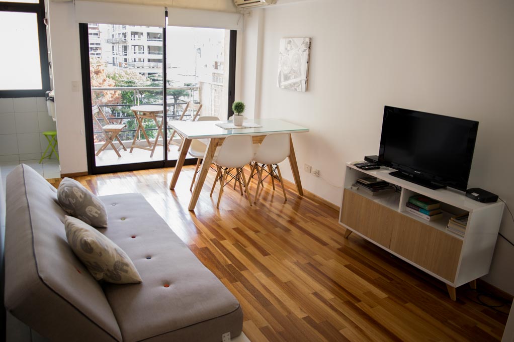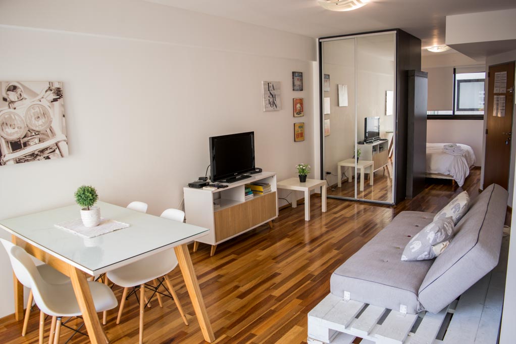 Apartamento mobiliado de um estudio localizado a 1 minuto caminhando da parada de ônibus e a 4 minutos caminhando da Estação de Metrô Plaza Italia.O apartamento tem living, comedor, cozinha (aberta), 1 banheiro e varanda. O quarto 1 tem cama de casal, clóset, 2 mesas de cabeceira, TV e banheiro privado. O lugar mede 35m² + 3m² de terraço aproximadamente. O custo dos serviços de condominio, água quente, água fria, eletricidade, gás, internet e TV a cabo deve ser pago antecipadamente com o aluguel mensal, com um limite de consumo de $ 170USD. O alojamiento tem lavanderia cujo valor é $ 1USD aproximadamente por carga de roupa (lavagem e secagem). Você deve pagar depósito de segurança, que será devolvido no final do período de locação; Também deve pagar $ 40USD ao momento de devolver o departamento para a limpeza do lugar. Próximo ao alojamento está é o complexo de eventos La Rural e o Jardim Botânico da cidade, bem como vários parques para praticar esportes e desfrutar de um passeio ao ar livre. Localizado no coração de Palermo, esta área é caracterizada por ter uma grande variedade de lojas, supermercados, bancos com bares e restaurantes para saborear a culinária local. Além disso, possui vários meios de transporte público para diferentes áreas da cidade.