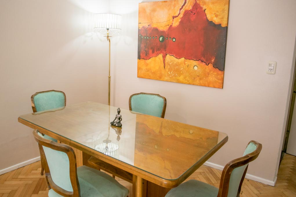 Apartamento mobiliado de 2 dormitórios localizado a 1 minuto caminhando da parada de ônibus e a 3 minutos caminhando da Estação de Metrô Aguero.O apartamento tem living, comedor, cozinha (fechada), 1 banheiro, 1 ½ banheiro e varanda. O quarto 1 tem cama de casal, clóset, cômoda, mesa de cabeceira e cadeira. O quarto 2 tem cama de solteiro, clóset e cadeira. O lugar mede 55m² + 7m² de terraço aproximadamente. O custo dos serviços de condominio, água quente, água fria, eletricidade, gás, internet, TV a cabo e aquecimento deve ser pago antecipadamente com o aluguel mensal, com um limite de consumo de $ 170USD. Você deve pagar depósito de segurança, que será devolvido no final do período de locação. Próximo ao alojamento está uma grande variedade de lojas, restaurantes, cafeterias e livrarias localizadas principalmente na Avenida Santa Fe. A poucos passos da estação de metrô Agüero está o Museu Xul Solar, com obras de um dos artistas argentinos mais emblemáticos. Além disso, existem várias áreas verdes para praticar esportes ou desfrutar do ar livre. Também tem vários meios de transporte público para diferentes áreas da cidade.