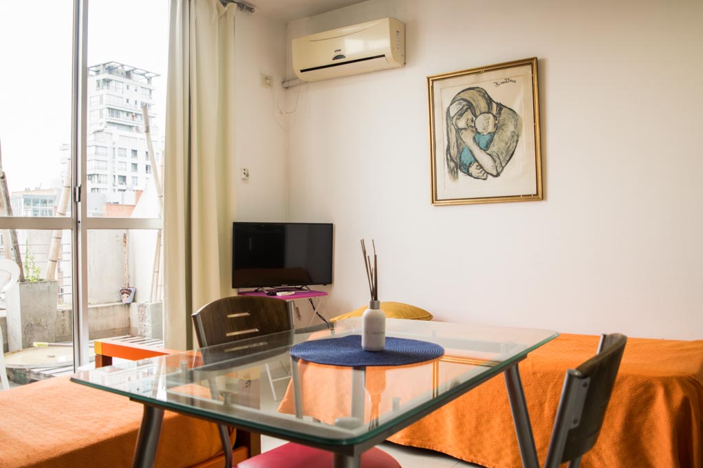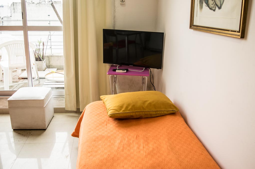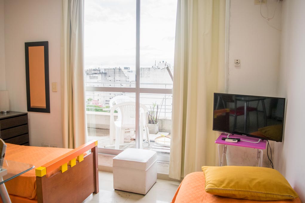 Apartamento mobiliado de um estudio localizado a 1 minuto caminhando da parada de ônibus e a 6 minutos caminhando da Estação de Metrô Palermo.O apartamento tem sala de jantar, cozinha (aberta) e 1 banheiro. O quarto 1 tem 2 camas de solteiro, guarda-roupa, cômoda e TV. O lugar mede 21m² + 5m² de terraço aproximadamente. O custo dos serviços de condomínio, água quente, água fria, internet, TV a cabo e aquecimento deve ser pago antecipadamente com o aluguel mensal, com um limite de consumo de $ 4USD. Além disso, deve ser considerado, o pagamento das despesas de serviços de eletricidade que somam $ 1USD aproximadamente. O imóvel tem lavanderia (lavagem e secagem). Você deve pagar depósito de segurança, que será devolvido no final do período de locação. Próximo ao imóvel está uma série de lojas, bancos e supermercados na Avenida Santa Fé. Nesta área está o centro comercial Arcos District, ideal para desfrutar de um dia de compras. A poucos passos existem diferentes parques onde é possível praticar esportes ou desfrutar de atividades ao ar livre. Além disso, a estação de metrô de Palermo se comunica com o trem San Martin, que dá acesso fácil a outros locais da cidade.