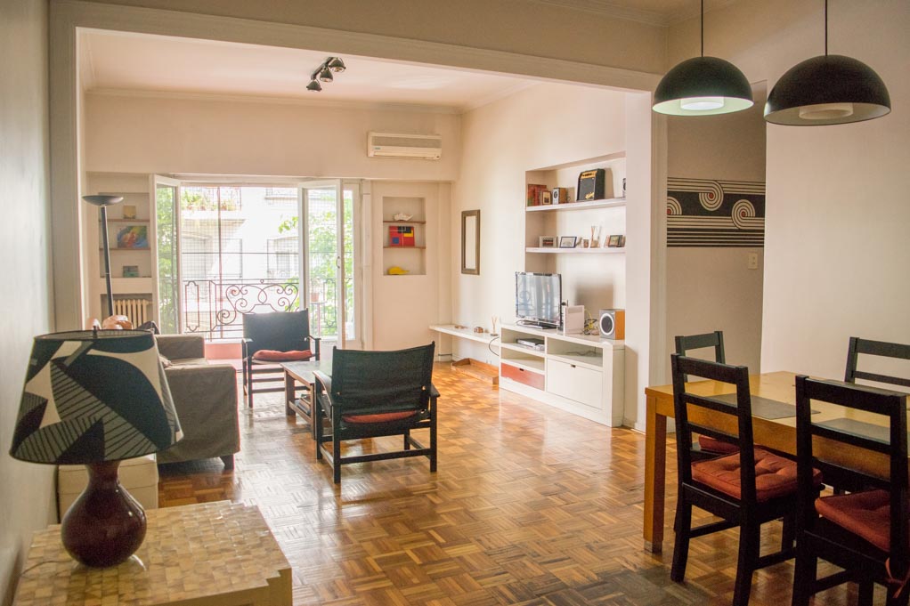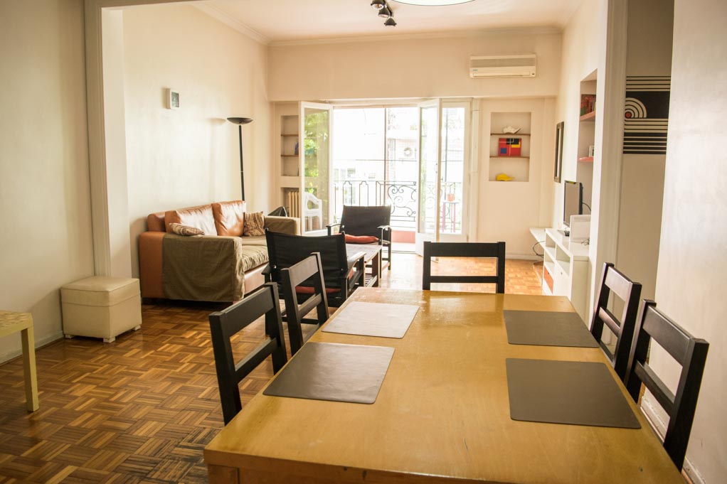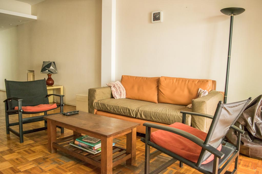 Apartamento mobiliado de 4 dormitórios localizado a 1 minuto caminhando da parada de ônibus e a 4 minutos caminhando da Estação de Metrô Bulnes.O apartamento tem living, sala de jantar, cozinha (fechada), 1 banheiro, 2 lavabo e varanda. O quarto 1 tem cama de casal, guarda-roupa, cômoda e mesa de cabeceira. O quarto 2 tem cama de casal, guarda-roupa, cômoda, escrivaninha e cadeira. O quarto 3 tem cama de casal, guarda-roupa, escrivaninha e cadeira. O quarto 4 tem cama de solteiro e mesa de cabeceira. O lugar mede 115m² + 4m² de terraço aproximadamente. O custo dos serviços de condomínio, água fria, eletricidade, gás e imposto deve ser pago antecipadamente com o aluguel mensal, com um limite de consumo de $ 400USD. Você deve pagar depósito de segurança, que será devolvido no final do período de locação; Também deve pagar $ 50USD ao momento de devolver o imóvel para a limpeza do lugar. Próximo ao imóvel está Parque Las Heras, onde é possível praticar esportes ou desfrutar de passeios ao ar livre. Na Avenida Santa Fé existem vários comércios, como restaurantes, bares, supermercados, várias lojas y bancos; além disso, há também o shopping center Alto Palermo, um dos mais conhecidos da cidade. Também tem bom acesso ao transporte público.