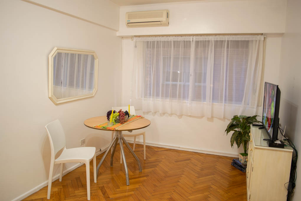 Apartamento mobiliado de 1 dormitório localizado a 2 minutos caminhando da parada de ônibus e a 14 minutos caminhando da Estação de Metrô Callao (D).O apartamento tem living, sala de jantar, cozinha (fechada) e 1 banheiro. O quarto 1 tem cama de casal, closet, cômoda e 2 mesas de cabeceira. O lugar mede aproximadamente 40m². Deve ser considerado, o pagamento das despesas de serviços de condomínio, água fria, eletricidade, gás, internet, TV a cabo e aquecimento que somam $ 5USD aproximadamente. Você deve pagar depósito de segurança, que será devolvido no final do período de locação. Próximo ao inmóvel está a Faculdade de Engenharia da Universidade de Buenos Aires. É uma área com muitos espaços verdes para desfrutar do ar livre e praticar esportes, além de restaurantes exclusivos. A Biblioteca Nacional Mariano Moreno também está localizada nesta área. Também possui edifícios e estátuas de grande valor histórico e arquitetônico.