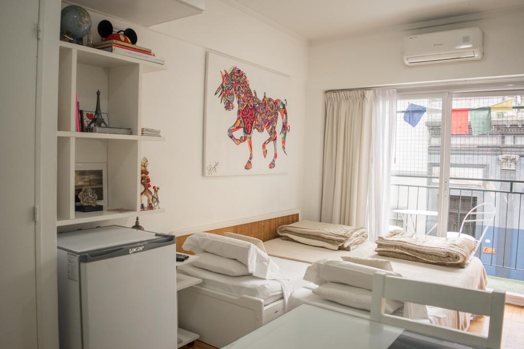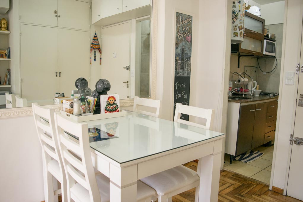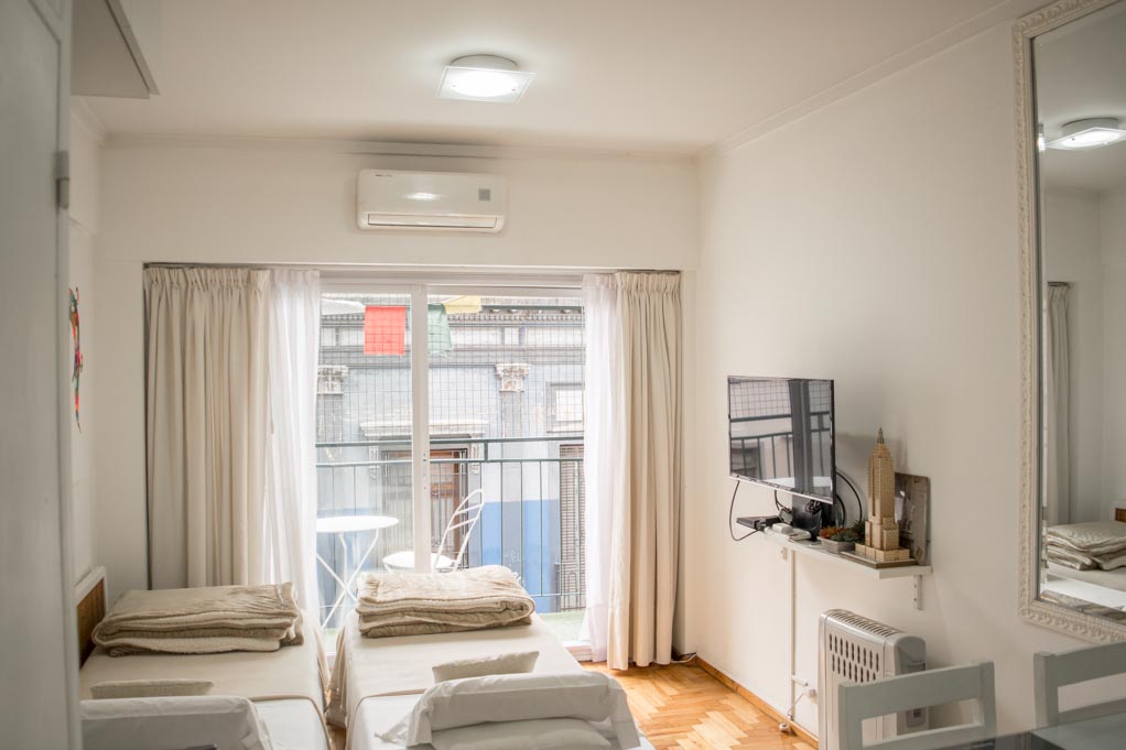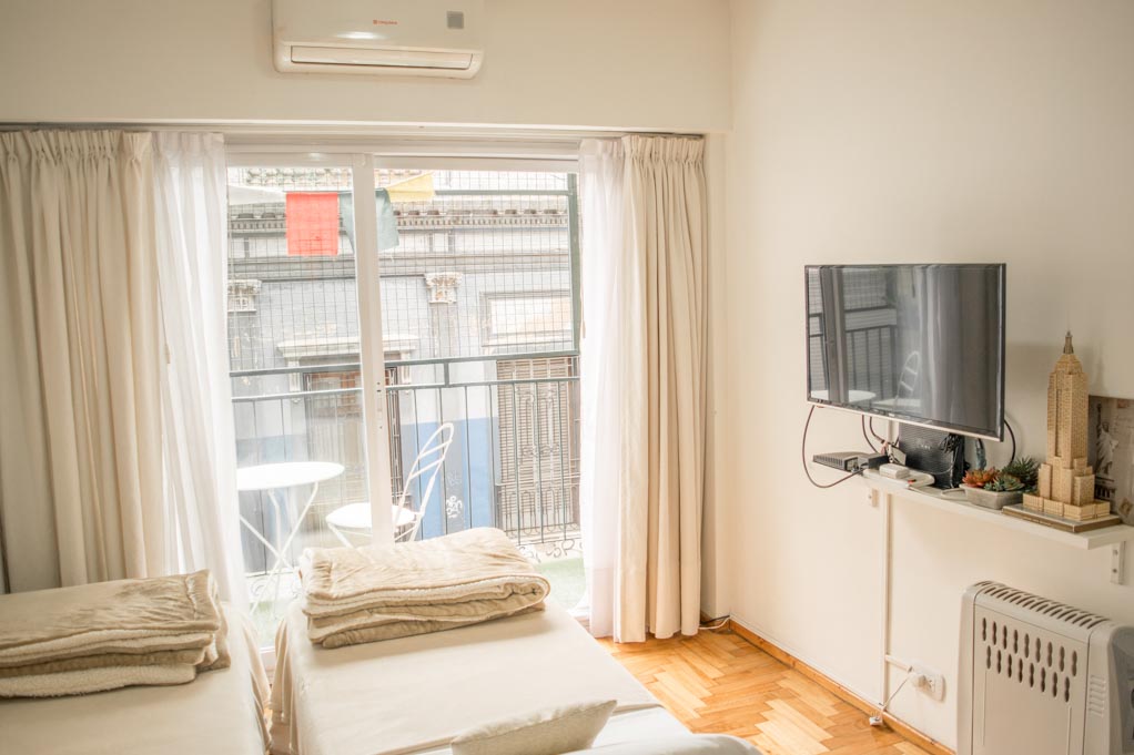Apartamento mobiliado de um estudio localizado a 1 minuto caminhando da parada de ônibus e a 7 minutos caminhando da Estação de Metrô Independencia (C).O apartamento tem comedor, cozinha (fechada), 1 banheiro e varanda. O quarto 1 tem 2 camas de casal, clóset, mesa de cabeceira, TV e 4 cadeiras. O lugar mede 25m² + 4m² de terraço aproximadamente. O custo dos serviços de condominio, água quente, água fria, eletricidade, gás, internet, TV a cabo e aquecimento deve ser pago antecipadamente com o aluguel mensal, com um limite de consumo de $ 3USD. Você deve pagar depósito de segurança, que será devolvido no final do período de locação. Próximo ao alojamento está a Plaza Dorrego, uma das mais antigas da cidade, onde acontece uma feira de antiguidades ao ar livre aos domingos. Este bairro faz parte do centro histórico da cidade de Buenos Aires e é característico por manter sua arquitetura antiga. O Mercado San Telmo é o ponto central, e está rodeado por museus, restaurantes, bares e tanguerías para desfrutar.
