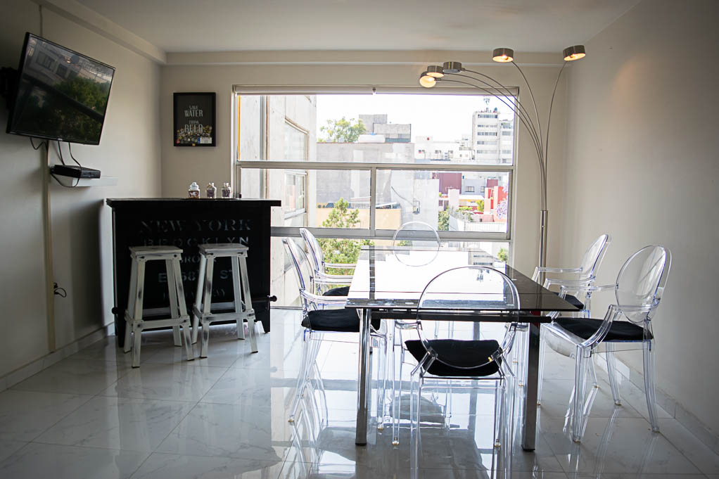 Apartamento mobiliado de 2 dormitórios localizado a 8 minutos caminhando da parada de ônibus e a 9 minutos caminhando da Estação de Metrô Hospital 20 de Noviembre.O apartamento tem living, sala de jantar, cozinha (fechada), 2 banheiros, varanda e 1 estacionamento. O quarto 1 tem cama de casal, closet, 2 mesas de cabeceira, TV e banheiro privado. O quarto 2 tem closet, sofá e TV. O lugar mede 90m² + 10m² de terraço aproximadamente. O custo dos serviços de condomínio deve ser pago antecipadamente com o aluguel mensal, com um limite de consumo de $ 164USD. Além disso, deve ser considerado, o pagamento das despesas de serviços de água fria, eletricidade, gás, internet, TV a cabo e telefone que somam $ 88USD aproximadamente. Você deve pagar depósito de segurança, que será devolvido no final do período de locação; Também deve pagar $ 28USD ao momento de devolver o imóvel para a limpeza do lugar. Próximo ao imóvel está uma área residencial com ruas largas e arborizadas, com grandes áreas verdes e espaço exclusivo para cães, além de duas universidades e a Paróquia de Divina Providencia. Existem vários meios de transporte público para diferentes partes da cidade.