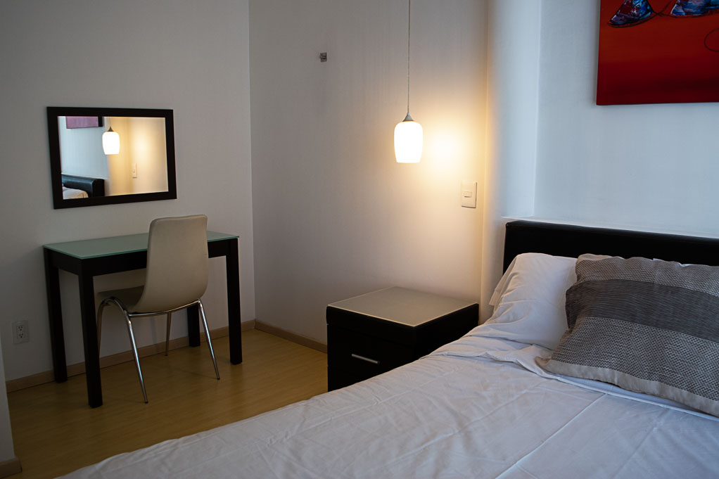 Apartamento mobiliado de 2 dormitórios localizado a 3 minutos caminhando da parada de ônibus.O apartamento tem living, sala de jantar, cozinha (fechada), 1 banheiro e 1 estacionamento. O quarto 1 tem cama de casal, closet, cômoda, 2 mesas de cabeceira, TV e cadeira. O quarto 2 tem cama de casal, closet, cômoda, mesa de cabeceira, escrivaninha e cadeira. O lugar mede aproximadamente 75m². O custo dos serviços de condomínio deve ser pago antecipadamente com o aluguel mensal, com um limite de consumo de $ 173USD. Além disso, deve ser considerado, o pagamento das despesas de serviços de água fria, eletricidade, gás, internet, TV a cabo e telefone que somam $ 61USD aproximadamente. Você deve pagar depósito de segurança, que será devolvido no final do período de locação; Também deve pagar $ 26USD ao momento de devolver o imóvel para a limpeza do lugar. Próximo ao imóvel está uma área de negócios corporativos, centros de saúde e vários circuitos gastronômicos e culturais, como o Mercado Masaryk. Além disso, existem várias opções de transporte público para diferentes partes da cidade.