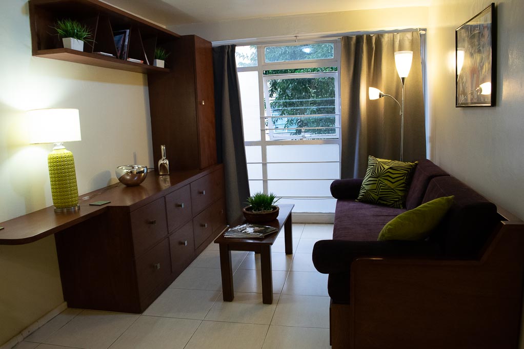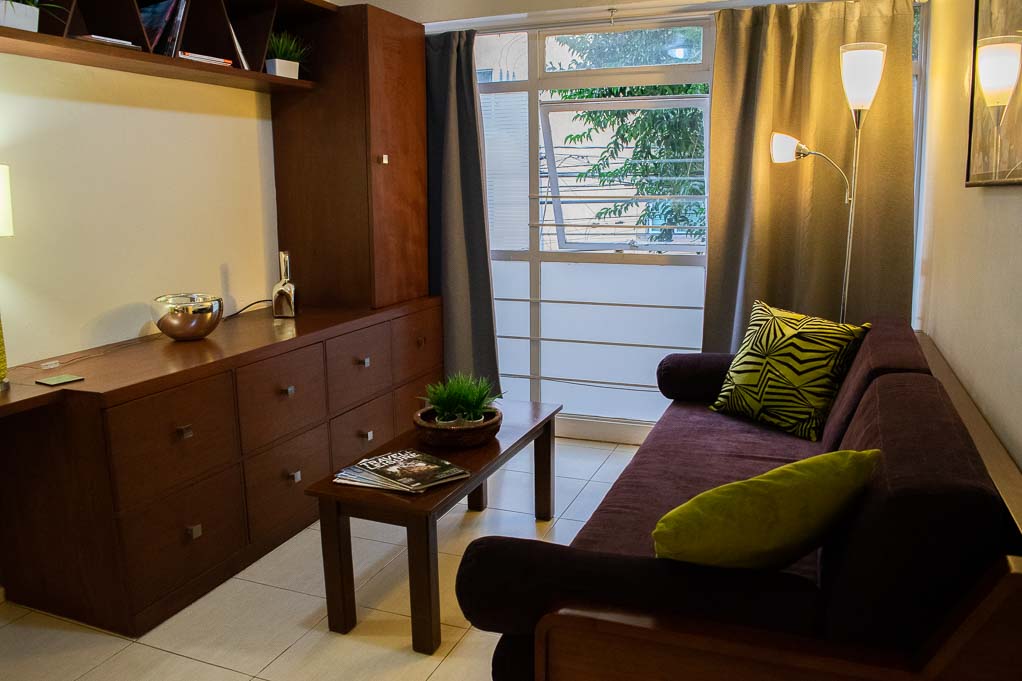 Apartamento mobiliado de 1 dormitório localizado a 1 minuto caminhando da parada de ônibus e a 16 minutos caminhando da Estação de Metrô Sevilla.O apartamento tem living, sala de jantar, cozinha (fechada), 1 banheiro e 1 estacionamento. O quarto 1 tem cama de casal e mesa de cabeceira. O lugar mede aproximadamente 50m². Deve ser considerado, o pagamento das despesas de serviços de condomínio, água fria, eletricidade, gás, internet, TV a cabo e telefone que somam $ 106USD aproximadamente. Você deve pagar depósito de segurança, que será devolvido no final do período de locação; Também deve pagar $ 29USD ao momento de devolver o imóvel para a limpeza do lugar.