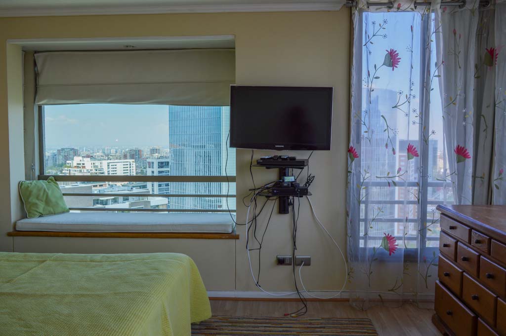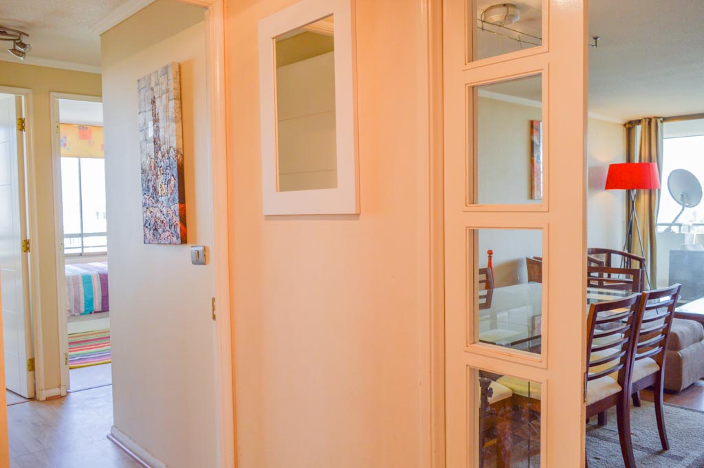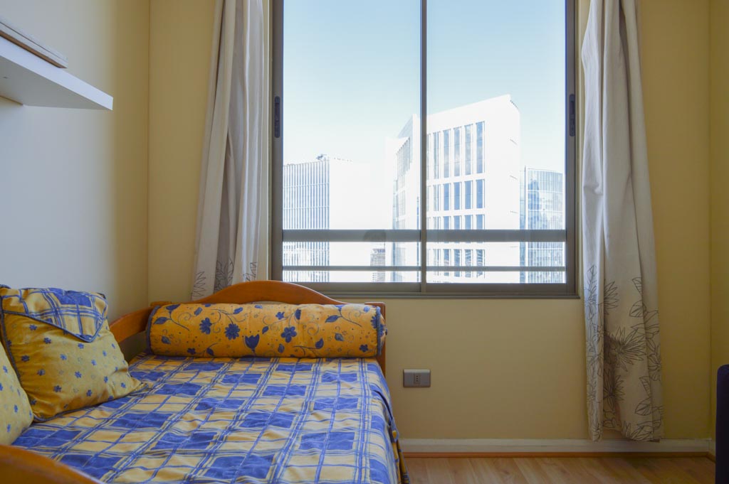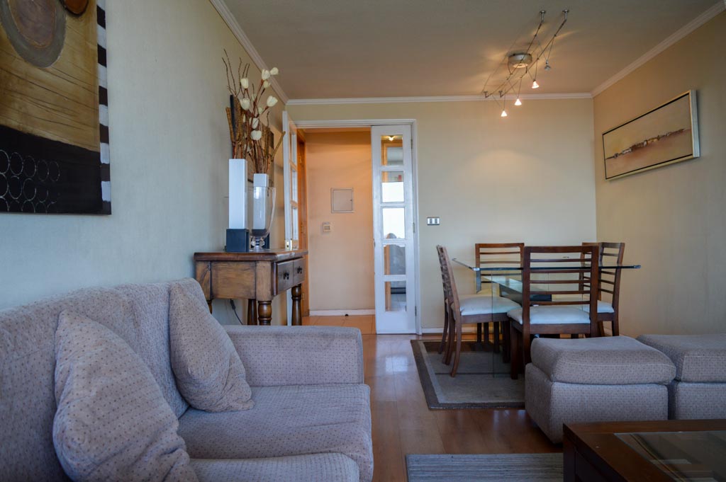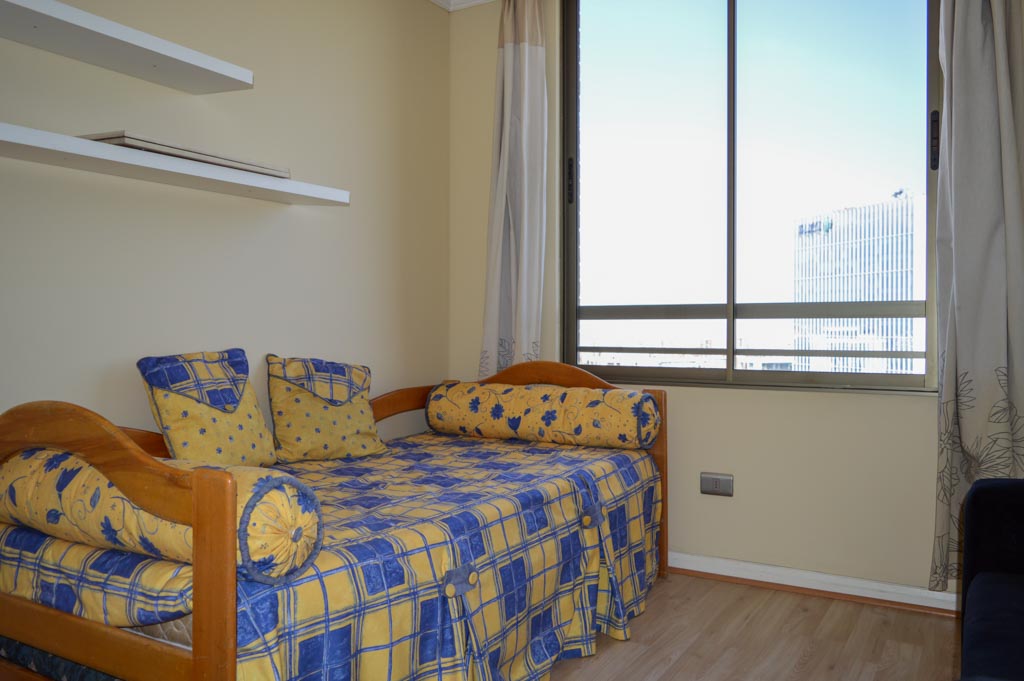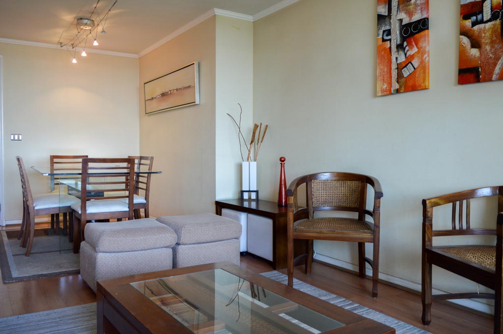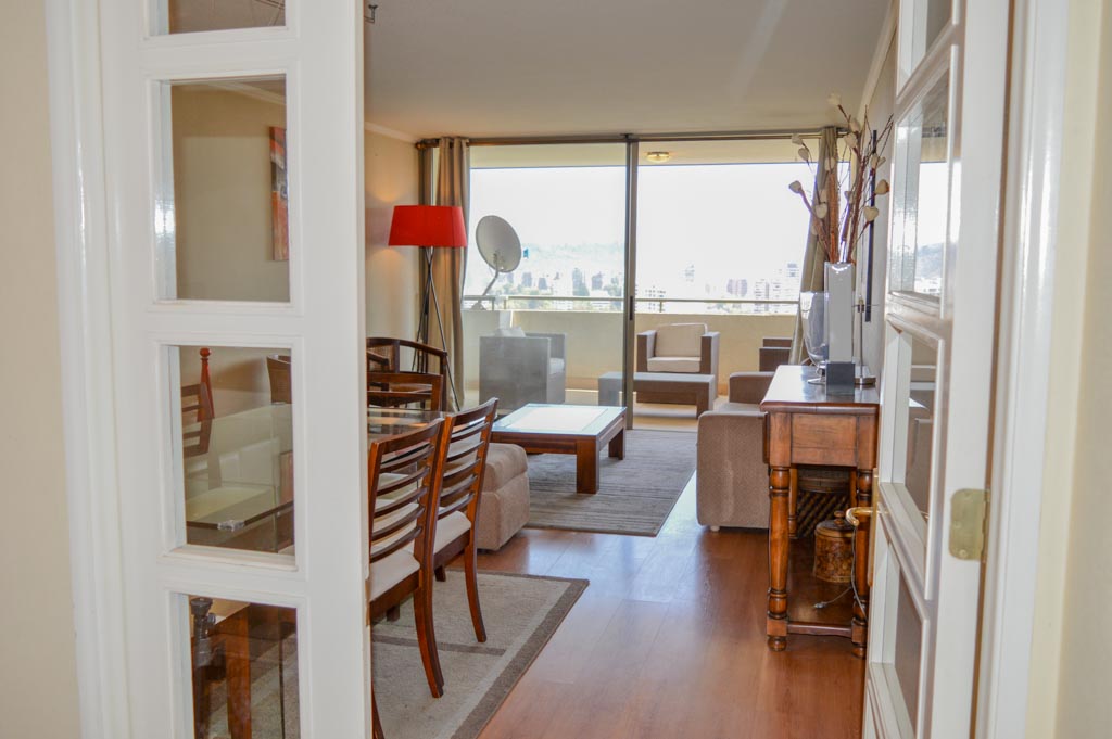 Apartamento mobiliado de 3 dormitórios localizado a 5 minutos caminhando da parada de ônibus e a 9 minutos caminhando da Estação de Metrô Escuela Militar.O apartamento tem living, sala de jantar, cozinha (fechada), 2 banheiros, varanda e 1 estacionamiento. O quarto 1 tem cama de casal, 2 closets, 2 mesas de cabeceira e banheiro privado. O quarto 2 tem bicama e mesa de cabeceira. O quarto 3 tem sofá e escrivaninha. O lugar mede 110m² + 5m² de terraço aproximadamente O custo dos serviços de condomínio, água quente, água fria, eletricidade e gás deve ser pago antecipadamente com o aluguel mensal, com um limite de consumo de $ 300USD. O imóvel tem lavanderia cujo valor é $ 1USD aproximadamente por carga de roupa (lavagem e secagem). Você deve pagar depósito de segurança, que será devolvido no final do período de locação; Também deve pagar $ 105USD ao momento de devolver o imóvel para a limpeza do lugar. Próximo ao imóvel está a Escola Militar do Libertador Bernardo O'Higgins, instituto responsável por formar oficiais para o Exército do Chile, bem como embaixadas, institutos profissionais, escolas, bancos e supermercados; bem como vários meios de transporte público para diferentes partes da cidade. Na estação do metrô (subsolo) se encontra uma galeria comercial.