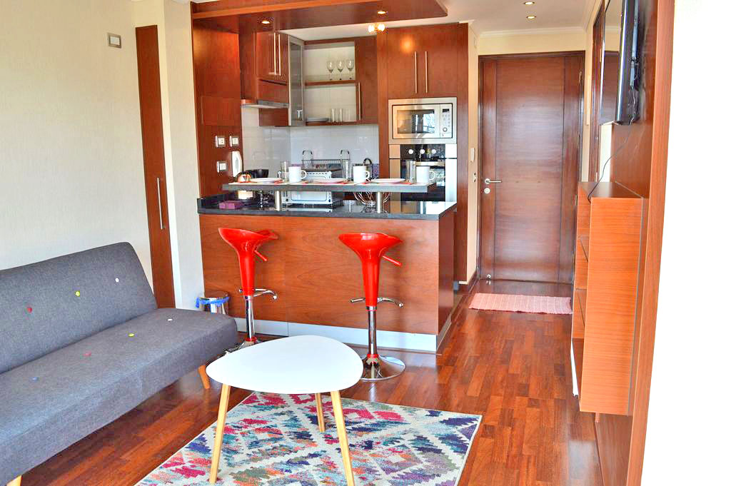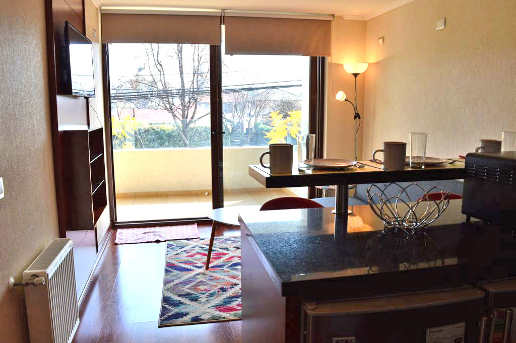 Apartamento mobiliado de 1 dormitório localizado a 2 minutos caminhando da parada de ônibus.O apartamento tem living, sala de jantar, cozinha (aberta), 1 banheiro, terraço e 1 estacionamiento (opcional, por um valor adicional de $ 48USD). O quarto 1 tem cama de casal, walk-in clóset, mesa de cabeceira e banheiro privado. O lugar mede 40m² + 12m² de terraço aproximadamente Deve ser considerado, o pagamento das despesas de serviços de condomínio, água quente, água fria, eletricidade e internet que somam $ 212USD aproximadamente. O imóvel tem lavanderia cujo valor é $ 2USD aproximadamente por carga de roupa (lavagem e secagem). Você deve pagar depósito de segurança, que será devolvido no final do período de locação; Também deve pagar $ 42USD ao momento de devolver o imóvel para a limpeza do lugar. Próximo ao imóvel está o Parque Los Dominicos, onde irá encontrar a Igreja Los Dominicos, centros culturais, comércio e o reconhecido "Pueblito Los Dominicos" passeio turístico ideal para a família, que se caracteriza pelo grande número de artesanato em cerâmica, têxteis, madeira, pedra , entre outros.