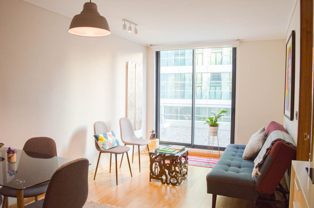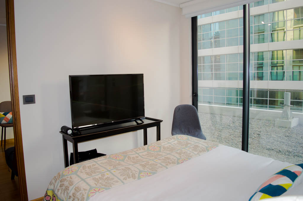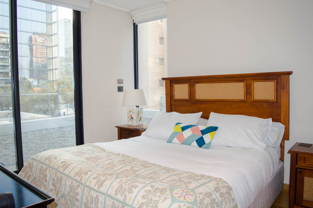 Apartamento mobiliado de 1 dormitório localizado a 1 minuto caminhando da parada de ônibus e a 4 minutos caminhando da Estação de Metrô Alcantára.O apartamento tem living, sala de jantar, cozinha (aberta), 1 banheiro, varanda e 1 estacionamento (opcional, por um valor adicional de $ 68USD). O quarto 1 tem cama de solteiro, 2 closets, 2 mesas de cabeceira, TV e banheiro privado. O lugar mede 38m² + 1m² de terraço aproximadamente. O custo dos serviços de condomínio, água quente, água fria, eletricidade, internet e limpeza semanal deve ser pago antecipadamente com o aluguel mensal, com um limite de consumo de $ 220USD. Além disso, deve ser considerado, o pagamento das despesas de serviços de gás que somam $ 0USD aproximadamente. O imóvel tem lavanderia cujo valor é $ 1USD aproximadamente por carga de roupa (lavagem e secagem). Você deve pagar depósito de segurança, que será devolvido no final do período de locação; Também deve pagar $ 34USD ao momento de devolver o imóvel para a limpeza do lugar. Próximo ao imóvel está o Barrio El Golf, conhecido como o coração financeiro de Santiago; nele poderá encontrar edifícios modernos de grandes hotéis, empresas e escritórios. A poucos passos está a praça Loreto, espaço verde especial para caminhadas e esportes ao ar livre.