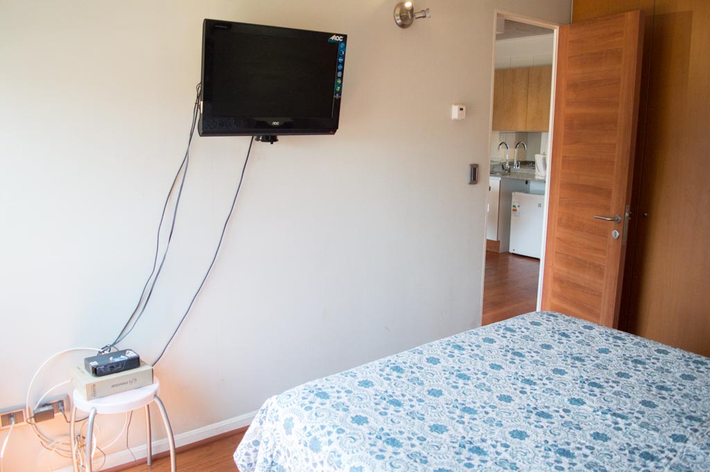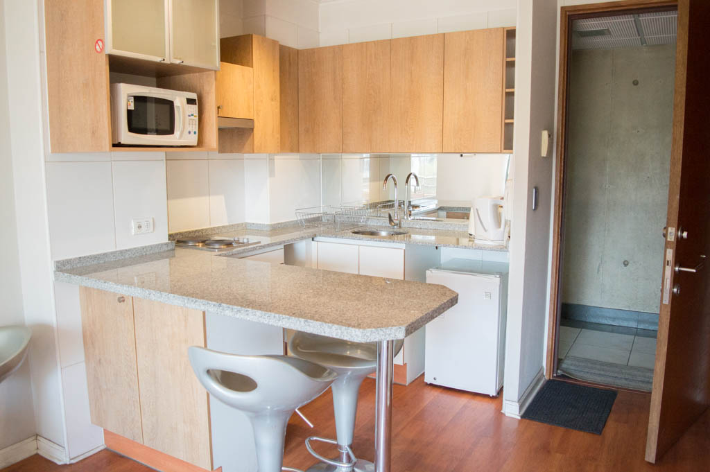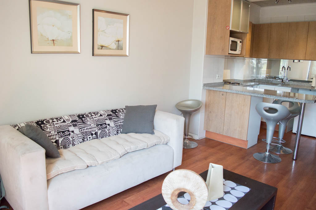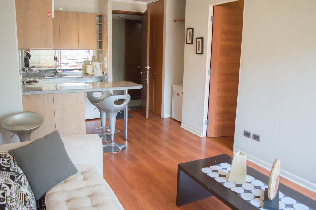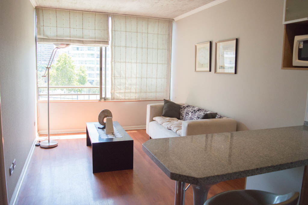 Apartamento mobiliado de 1 dormitório localizado a 3 minutos caminhando da parada de ônibus e a 6 minutos caminhando da Estação de Metrô Hernando de Magallanes.O apartamento tem living, sala de jantar, cozinha (aberta) e 1 banheiro. O quarto 1 tem cama de casal, closet, 2 mesas de cabeceira e banheiro privado. O lugar mede aproximadamente 45m². O custo dos serviços de condomínio, água quente, água fria, eletricidade, internet e TV a cabo deve ser pago antecipadamente com o aluguel mensal, com um limite de consumo de $ 164USD. O imóvel tem lavanderia cujo valor é $ 2USD aproximadamente por carga de roupa (lavagem e secagem). Você deve pagar depósito de segurança, que será devolvido no final do período de locação; Também deve pagar $ 34USD ao momento de devolver o imóvel para a limpeza do lugar. Próximo ao imóvel está a Corporação Cultural de Las Condes, onde você pode encontrar uma biblioteca, anfiteatro e exposições variadas de artistas. Na Avenida Las Condes se encontra lojas, centros educacionais, cafés, restaurantes e vários meios de transportes públicos, para diferentes partes da cidade.