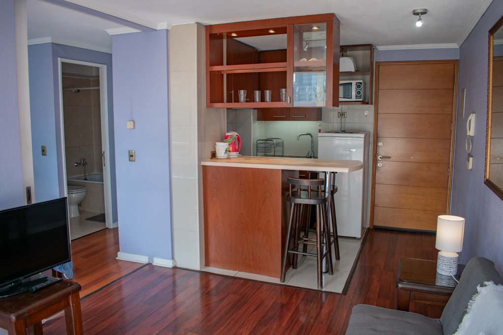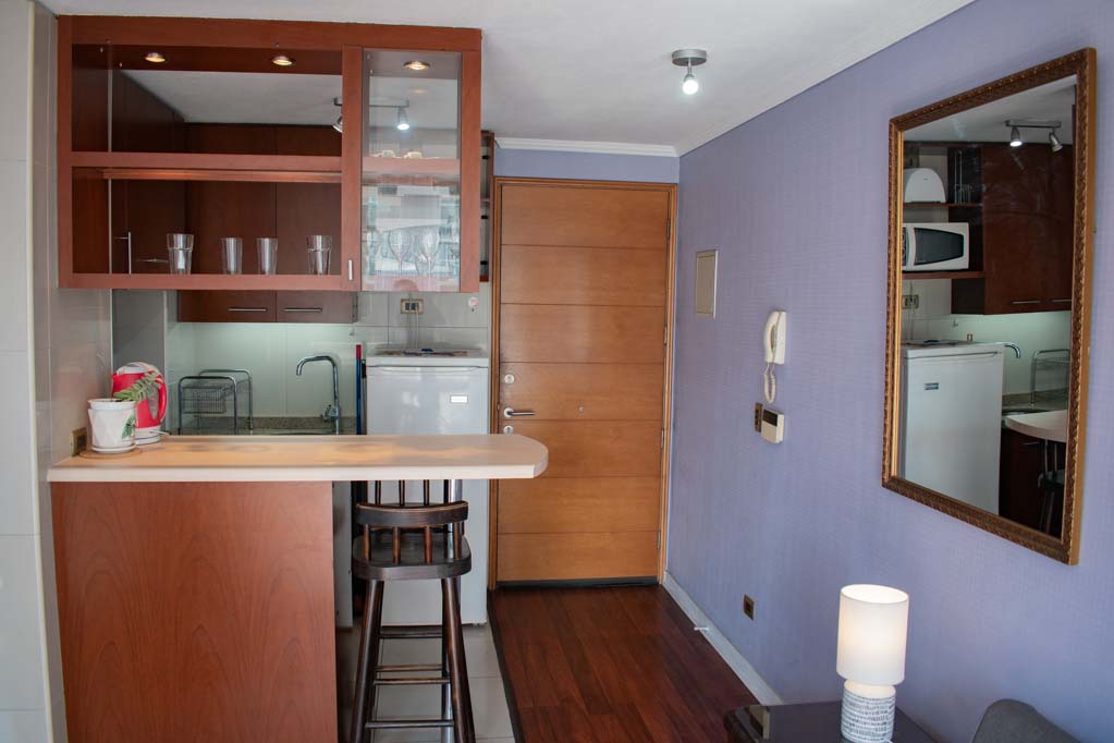 Apartamento mobiliado de 1 dormitório localizado a 3 minutos caminhando da parada de ônibus e a 3 minutos caminhando da Estação de Metrô Manuel Montt.O apartamento tem living, sala de jantar, cozinha (aberta), 1 banheiro, varanda e 1 estacionamiento (opcional, por um valor adicional de $ 82USD). O quarto 1 tem cama de casal, closet, 2 mesas de cabeceira e banheiro privado. O lugar mede 35m² + 4m² de terraço aproximadamente O custo dos serviços de condomínio, água quente, água fria, eletricidade e gás deve ser pago antecipadamente com o aluguel mensal, com um limite de consumo de $ 136USD. O imóvel tem lavanderia cujo valor é $ 2USD aproximadamente por carga de roupa (lavagem e secagem). Você deve pagar depósito de segurança, que será devolvido no final do período de locação; Também deve pagar $ 27USD ao momento de devolver o imóvel para a limpeza do lugar. Próximo ao imóvel está a Avenida Providencia, onde você pode encontrar lojas, bancos, restaurantes, cafés e transportes públicos. Há também a Avenida Manuel Montt, caracterizada pela presença do setor universitário, comercial e boêmio da área; nele você vai encontrar muitos bares e discotecas.