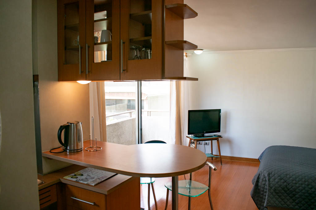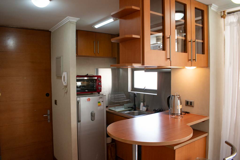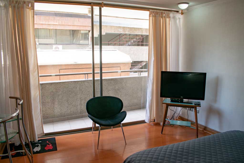 Apartamento mobiliado de um estudio localizado a 5 minutos caminhando da parada de ônibus e a 5 minutos caminhando da Estação de Metrô Pedro de Valdivia.O apartamento tem sala de jantar, cozinha (aberta), 1 banheiro e varanda. O quarto 1 tem cama de casal, closet, 2 mesas de cabeceira e TV. O lugar mede 30m² + 2m² de terraço aproximadamente O custo dos serviços de condomínio, água quente, água fria e eletricidade deve ser pago antecipadamente com o aluguel mensal, com um limite de consumo de $ 128USD. O imóvel tem lavanderia cujo valor é $ 2USD aproximadamente por carga de roupa (lavagem e secagem). Você deve pagar depósito de segurança, que será devolvido no final do período de locação; Também deve pagar $ 41USD ao momento de devolver o imóvel para a limpeza do lugar. Próximo ao imóvel está a Avenida Providencia, onde se encontra diferentes lojas, bancos, supermercados, restaurantes, cafés, bares, e locomoção para diferentes áreas da capital. À passos você pode encontrar a igreja da Divina Providência, um monumento nacional, e o Parque das esculturas, com obras de vários artistas e agradáveis áreas verdes.