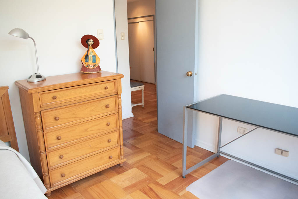 Apartamento mobiliado de 2 dormitórios localizado a 5 minutos caminhando da parada de ônibus.O apartamento tem living, sala de jantar, cozinha (fechada), 2 banheiros e comedor diario. O quarto 1 tem cama de casal, guarda-roupa, cômoda, mesa de cabeceira e banheiro privado. O quarto 2 tem cama de solteiro, guarda-roupa, cômoda e escrivaninha. O lugar mede aproximadamente 85m². Deve ser considerado, o pagamento das despesas de serviços de condomínio, água quente, água fria, eletricidade e gás que somam $ 124USD aproximadamente. Você deve pagar depósito de segurança, que será devolvido no final do período de locação; Também deve pagar $ 56USD ao momento de devolver o imóvel para a limpeza do lugar. Próximo ao imóvel está a Avenida Nueva Providencia e a Avenida Providencia (coração de Providencia), onde você pode encontrar lojas, bancos, academias, supermercados e transportes públicos. À passos você encontra o famoso centro comercial Costanera Center, o maior e mais moderno centro comercial na América Latina.