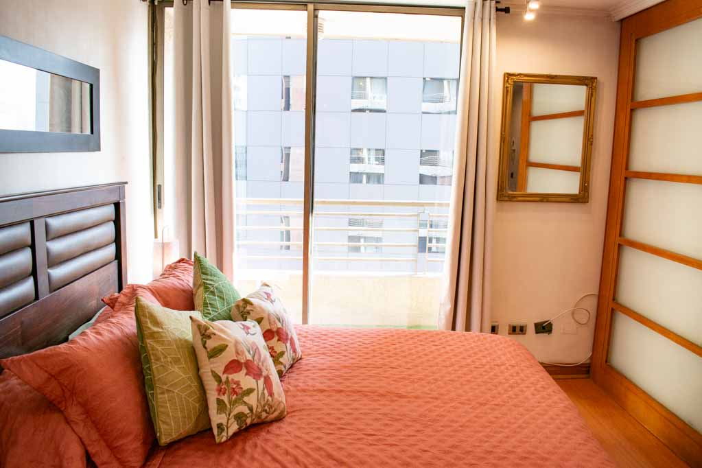 Apartamento mobiliado de 1 dormitório localizado a 1 minuto caminhando da parada de ônibus e a 4 minutos caminhando da Estação de Metrô Los Leones.O apartamento tem living, sala de jantar, cozinha (aberta), 1 banheiro e terraço. O quarto 1 tem cama de casal, closet, 2 mesas de cabeceira e banheiro privado. O lugar mede 33m² + 3m² de terraço aproximadamente Deve ser considerado, o pagamento das despesas de serviços de condomínio, água quente, água fria, eletricidade e internet que somam $ 151USD aproximadamente. O imóvel tem lavanderia cujo valor é $ 2USD aproximadamente por carga de roupa (lavagem e secagem). Você deve pagar depósito de segurança, que será devolvido no final do período de locação; Também deve pagar $ 49USD ao momento de devolver o imóvel para a limpeza do lugar. Próximo ao imóvel está a Avenida Nueva Providencia e a Avenida Providencia (coração de Providencia), onde você pode encontrar lojas, bancos, academias, supermercados e transportes públicos. À passos você encontra o famoso centro comercial Costanera Center, o maior e mais moderno centro comercial na América Latina.