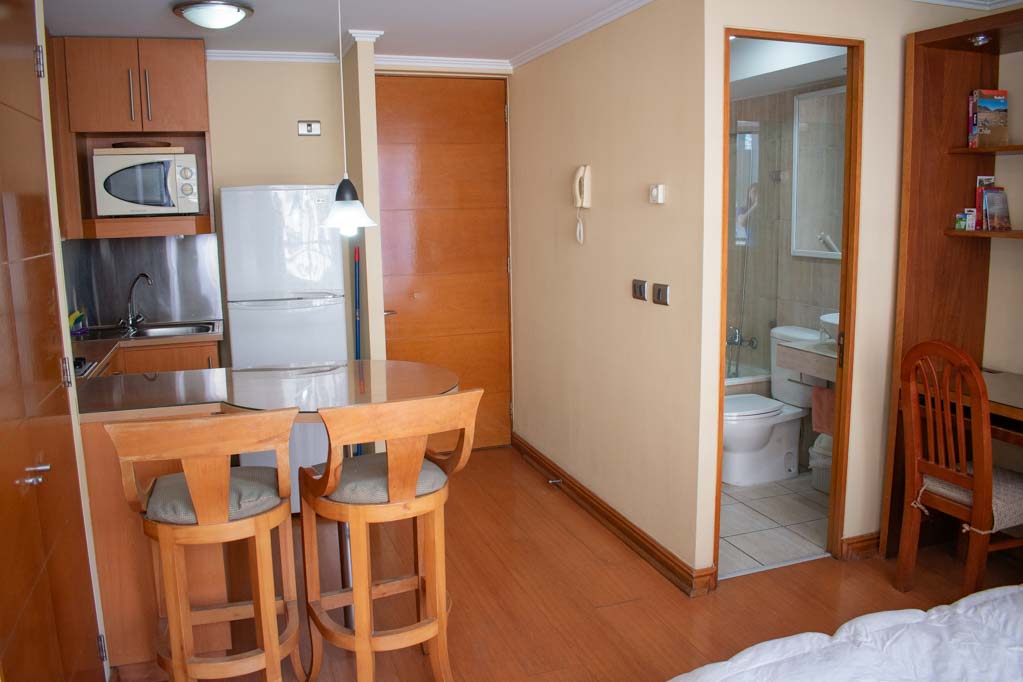 Apartamento mobiliado de um estudio localizado a 4 minutos caminhando da parada de ônibus e a 6 minutos caminhando da Estação de Metrô Pedro de Valdivia.O apartamento tem living, sala de jantar, cozinha (aberta) e 1 banheiro. O quarto 1 tem cama de casal, closet, escrivaninha, cadeira e banheiro privado. O lugar mede aproximadamente 23m². O custo dos serviços de condomínio, água quente, água fria e eletricidade deve ser pago antecipadamente com o aluguel mensal, com um limite de consumo de $ 119USD. O imóvel tem lavanderia cujo valor é $ 2USD aproximadamente por carga de roupa (lavagem e secagem). Você deve pagar depósito de segurança, que será devolvido no final do período de locação; Também deve pagar $ 54USD ao momento de devolver o imóvel para a limpeza do lugar. Próximo ao imóvel está a Avenida Providencia, onde se encontra diferentes lojas, bancos, supermercados, restaurantes, cafés, bares, e locomoção para diferentes áreas da capital. À passos você pode encontrar a igreja da Divina Providência, um monumento nacional, e o Parque das esculturas, com obras de vários artistas e agradáveis áreas verdes.