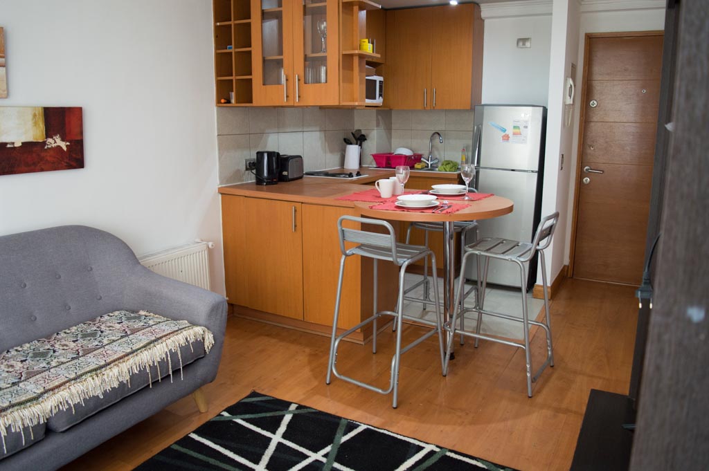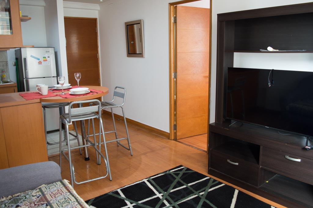 Apartamento mobiliado de 1 dormitório localizado a 3 minutos caminhando da parada de ônibus e a 8 minutos caminhando da Estação de Metrô Bellas Artes.O apartamento tem living, sala de jantar, cozinha (aberta) e 1 banheiro. O quarto 1 tem cama de casal, closet, 2 mesas de cabeceira e banheiro privado. O lugar mede aproximadamente 35m². Deve ser considerado, o pagamento das despesas de serviços de condomínio, água quente, água fria, eletricidade e gás que somam $ 117USD aproximadamente. O imóvel tem lavanderia cujo valor é $ 2USD aproximadamente por carga de roupa (lavagem e secagem). Você deve pagar depósito de segurança, que será devolvido no final do período de locação; Também deve pagar $ 29USD ao momento de devolver o imóvel para a limpeza do lugar. Próximo ao imóvel está o Barrio Lastarria e Barrio Bellas Artes (bairros históricos - culturais), caracterizados por suas mansões do século XIX restauradas e utilizadas como restaurantes, cafés, bibliotecas, centros culturais, entre outros. A poucos passos de distância você pode encontrar o Museu Nacional de Belas Artes, onde é preservada a arte nacional e internacional mais valiosa e o Parque Florestal, local ideal para compartilhar com os amigos, praticar esportes e caminhar.