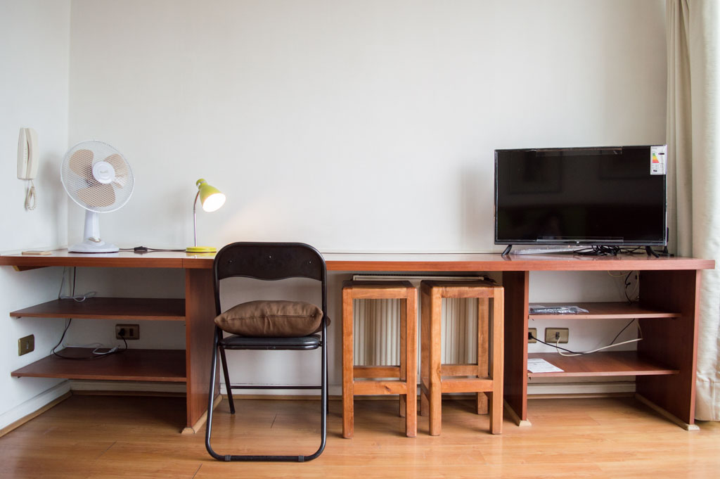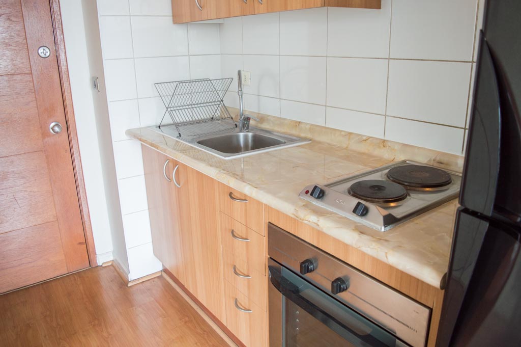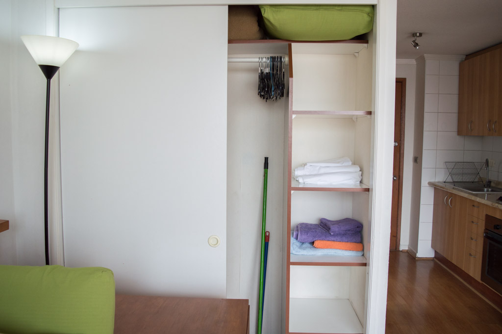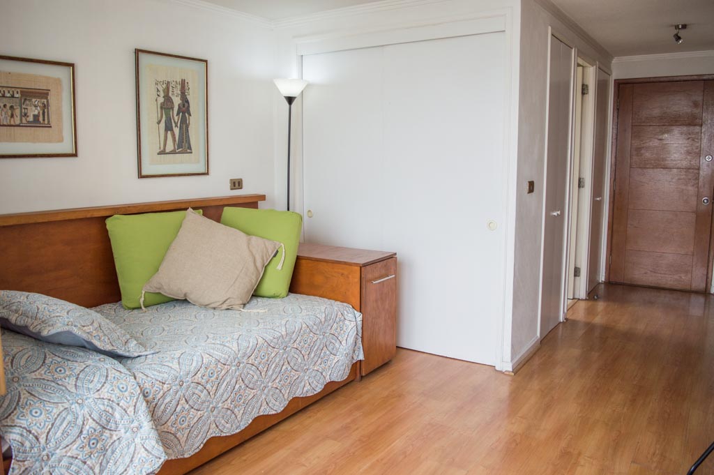 Apartamento mobiliado de um estudio localizado a 2 minutos caminhando da parada de ônibus e a 5 minutos caminhando da Estação de Metrô Los Héroes.O apartamento tem sala de jantar, cozinha (aberta), 1 banheiro e varanda. O quarto 1 tem cama de solteiro, closet, mesa de cabeceira, TV, escrivaninha, cadeira e banheiro privado. O lugar mede 28m² + 2m² de terraço aproximadamente O custo dos serviços de condomínio, água quente, água fria e eletricidade deve ser pago antecipadamente com o aluguel mensal, com um limite de consumo de $ 105USD. O imóvel tem lavanderia cujo valor é $ 2USD aproximadamente por carga de roupa (lavagem e secagem). Você deve pagar depósito de segurança, que será devolvido no final do período de locação; Também deve pagar $ 35USD ao momento de devolver o imóvel para a limpeza do lugar. Próximo ao imóvel está a Avenida Bernardo O'Higgins (mais conhecida como Alameda) avenida principal de Santiago sob o qual opera a Linha 1 de Metro de Santiago e onde você pode encontrar o Monumento aos Heróis de Concepción e a conhecida Confitería Torres.