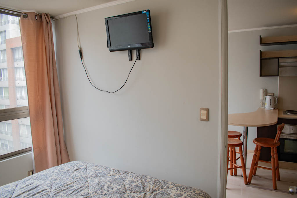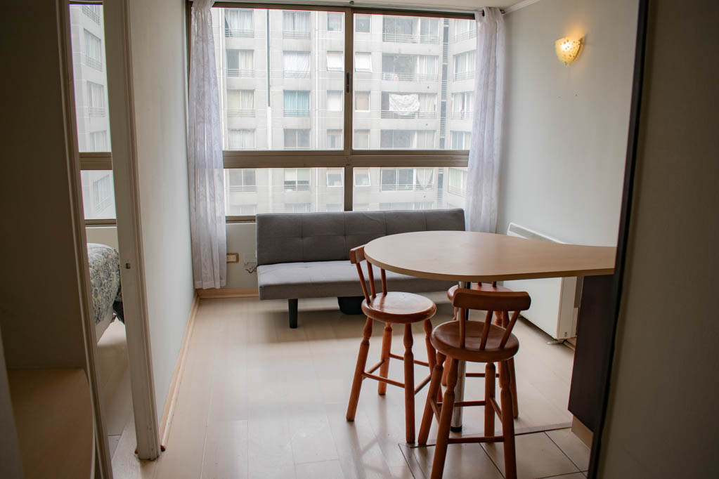 Apartamento mobiliado de 1 dormitório localizado a 5 minutos caminhando da parada de ônibus e a 6 minutos caminhando da Estação de Metrô Santa Lucía.O apartamento tem living, sala de jantar, cozinha (aberta) e 1 banheiro. O quarto 1 tem cama de casal, closet, 2 mesas de cabeceira, TV e banheiro privado. O lugar mede aproximadamente 33m². O custo dos serviços de condomínio, água quente, água fria e eletricidade deve ser pago antecipadamente com o aluguel mensal, com um limite de consumo de $ 111USD. O imóvel tem lavanderia cujo valor é $ 2USD aproximadamente por carga de roupa (lavagem e secagem). Você deve pagar depósito de segurança, que será devolvido no final do período de locação; Também deve pagar $ 56USD ao momento de devolver o imóvel para a limpeza do lugar. Próximo ao imóvel está a Biblioteca Nacional, Teatro Municipal de Santiago, Art Cinema, feiras de artesanato, centros culturais e do Cerro Santa Lucia, principal foco de turismo e passeios dominical pelas atrações que apresenta, como; fontes de água, terraços e varandas, onde pode desfrutar de uma privilegiada vista de Santiago.